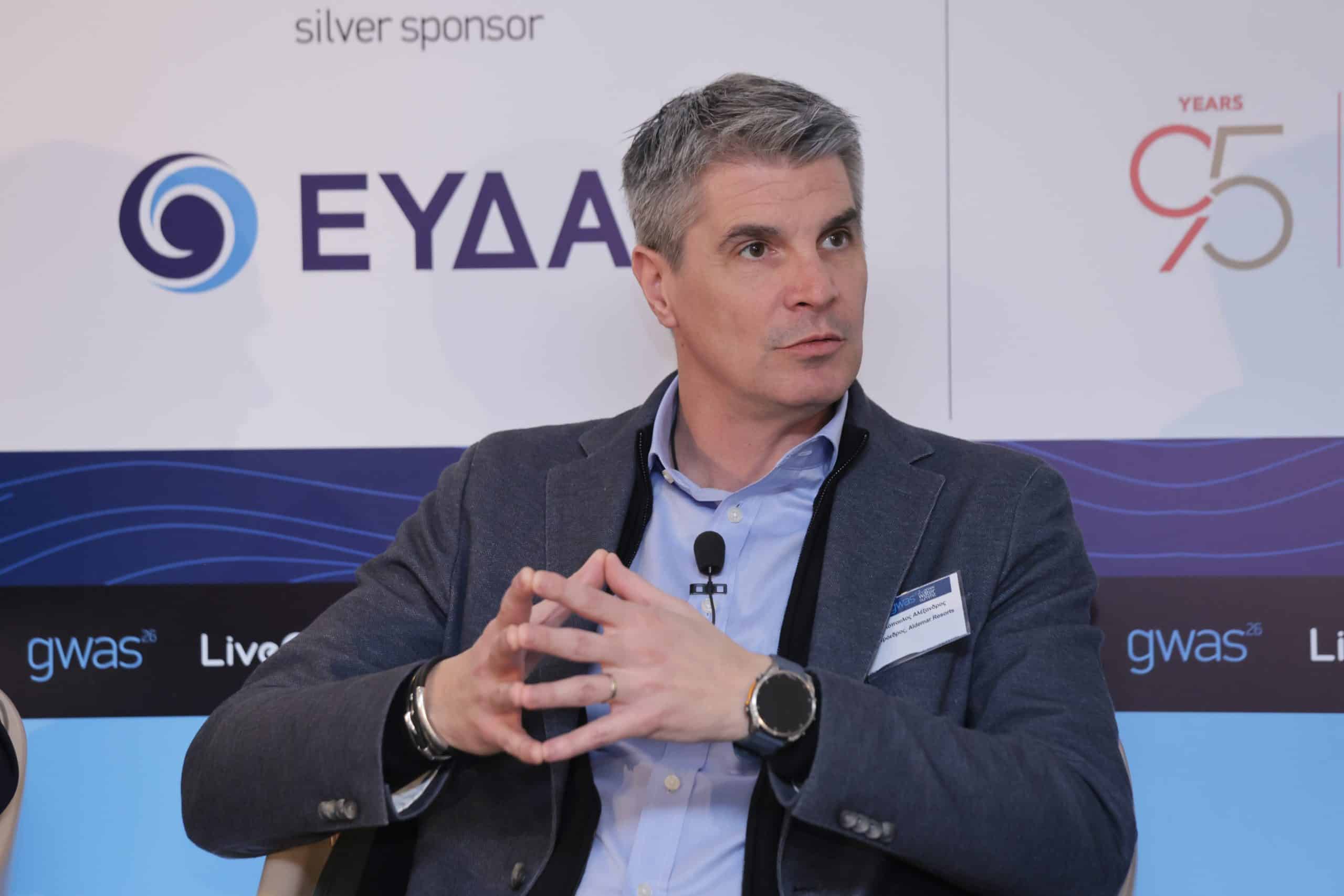 Ο κ. Ευστρατιάδης τόνισε τη σημασία της τεχνολογίας και της Τεχνητής Νοημοσύνης στη μείωση απωλειών και κόστους, ενώ ανέδειξε την ανάγκη δημιουργίας επενδυτικών σχημάτων (funds) για το νερό, με μακροπρόθεσμη στρατηγική.