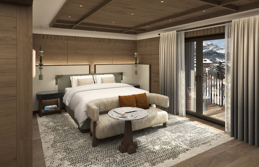 Αποτίνοντας φόρο τιμής στη φυσική ομορφιά των Δολομιτών και την παράδοση της φιλοξενίας της Cortina, ο σχεδιασμός του ξενοδοχείου θα συνδυάζει την αλπική κομψότητα με σύγχρονα εκλεπτυσμένα στοιχεία. Με στοιχεία εμπνευσμένα από το ορεινό περιβάλλον της περιοχής και ειδικά δημιουργημένα για αυτό το ξενοδοχείο με υλικά τοπικής προέλευσης, οι εσωτερικοί χώροι θα προσφέρουν μια εκλεπτυσμένη, εμβληματική εμπειρία.