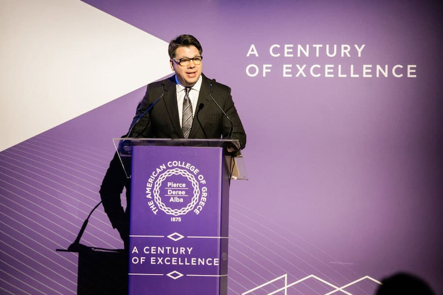 Τον λόγο πήρε ο Υπουργός Παιδείας, Θρησκευμάτων και Αθλητισμού κ. Κυριάκος Πιερρακάκης, ο οποίος δήλωσε: «Απόψε εκπροσωπώ τον Πρωθυπουργό Κυριάκο Μητσοτάκη, που επιθυμούσε να παρευρεθεί ο ίδιος στην εκδήλωση, με αφορμή την επέτειο των 100 χρόνων του Αμερικανικού Κολλεγίου στην Ελλάδα, καθώς πιστεύει ότι το Αμερικανικό Κολλέγιο Ελλάδος αποτελεί μία σημαντική σελίδα της ελληνικής ιστορίας, ένα αφήγημα δύναμης, ανθεκτικότητας και αλληλεγγύης, με στόχο την ανάπτυξη και την ευημερία της χώρας». Κλείνοντας, ευχήθηκε τα επόμενα 100 χρόνια να αποδείξουν έμπρακτα τη δυναμική του Κολλεγίου, τις διαρκείς επιτυχίες του, την καινοτομία και την αφοσίωση στην εκπαίδευση, διατηρώντας ζωντανή την έμπνευση που αντλεί από τις ρίζες και την παράδοσή του. Οι σημερινές γενιές, με τη σειρά μας, έχουμε καθήκον να δημιουργούμε τις ευνοϊκότερες προϋποθέσεις για το μέλλον, με την παιδεία πάντα στο επίκεντρο.