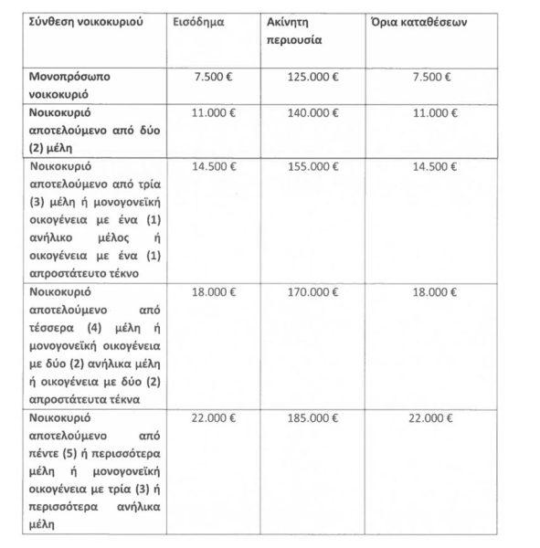 3. Για δανειολήπτες που πληρούν τα εξής περιουσιακά και εισοδηματικά όρια, καθώς και όρια καταθέσεων της παρούσας (Κατηγορία 1):