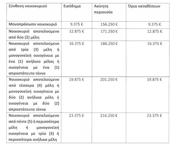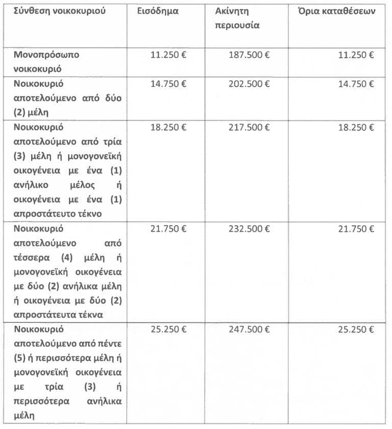 5. Για δανειολήπτες που πληρούν τα εξής περιουσιακά και εισοδηματικά όρια, καθώς και όρια καταθέσεων της παρούσας (Κατηγορία 3):