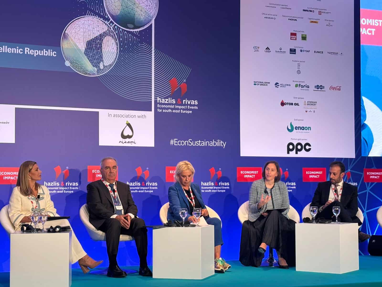 Η ανθεκτικότητα της ελληνικής οικονομίας και των επιχειρήσεων βρέθηκε στο επίκεντρο συζήτησης στο πλαίσιο του συνεδρίου για τη βιωσιμότητα στη Νοτιοανατολική Ευρώπη και τη Μεσόγειο, με τίτλο «The Ninth Sustainability Summit for SE Europe & the Mediterranean: Seeking a new balance amidst a derailed green transition», που πραγματοποιείται το διήμερο 13 και 14 Οκτωβρίου στο Divani Apollon Palace & Thalasso στο Καβούρι.