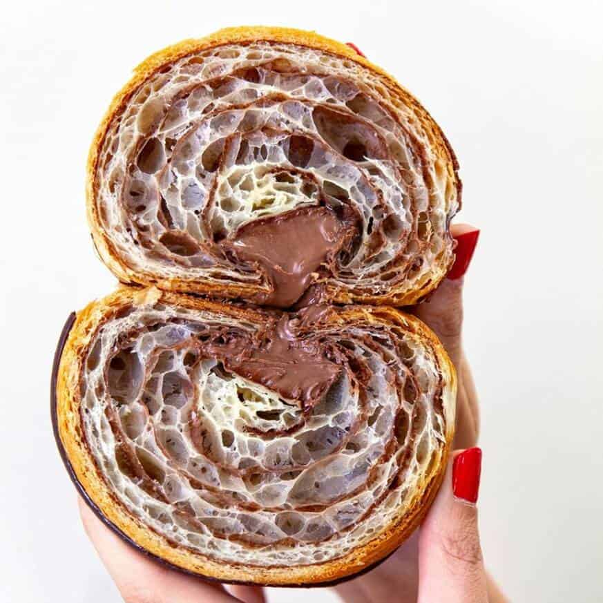 Croissant με πλούσια γέμιση πραλίνας σοκολάτας για τους παραδοσιακούς λάτρεις της σοκολάτας