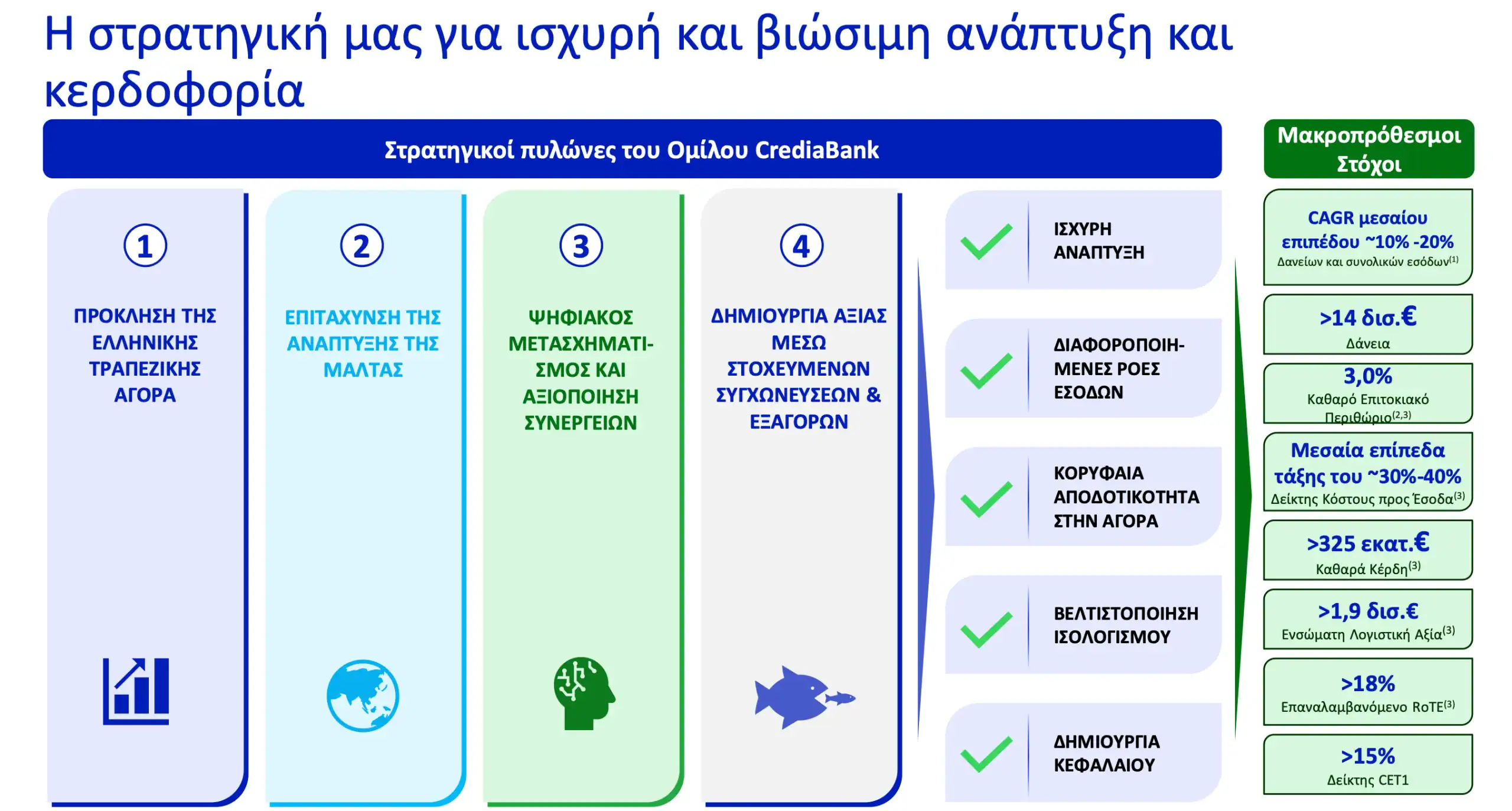 Τη στρατηγική της για ισχυρή και βιώσιμη ανάπτυξη παρουσίασε η CrediaBank, θέτοντας συγκεκριμένους μακροπρόθεσμους στόχους για την κερδοφορία, την πιστωτική επέκταση και την αποδοτικότητα του ομίλου.