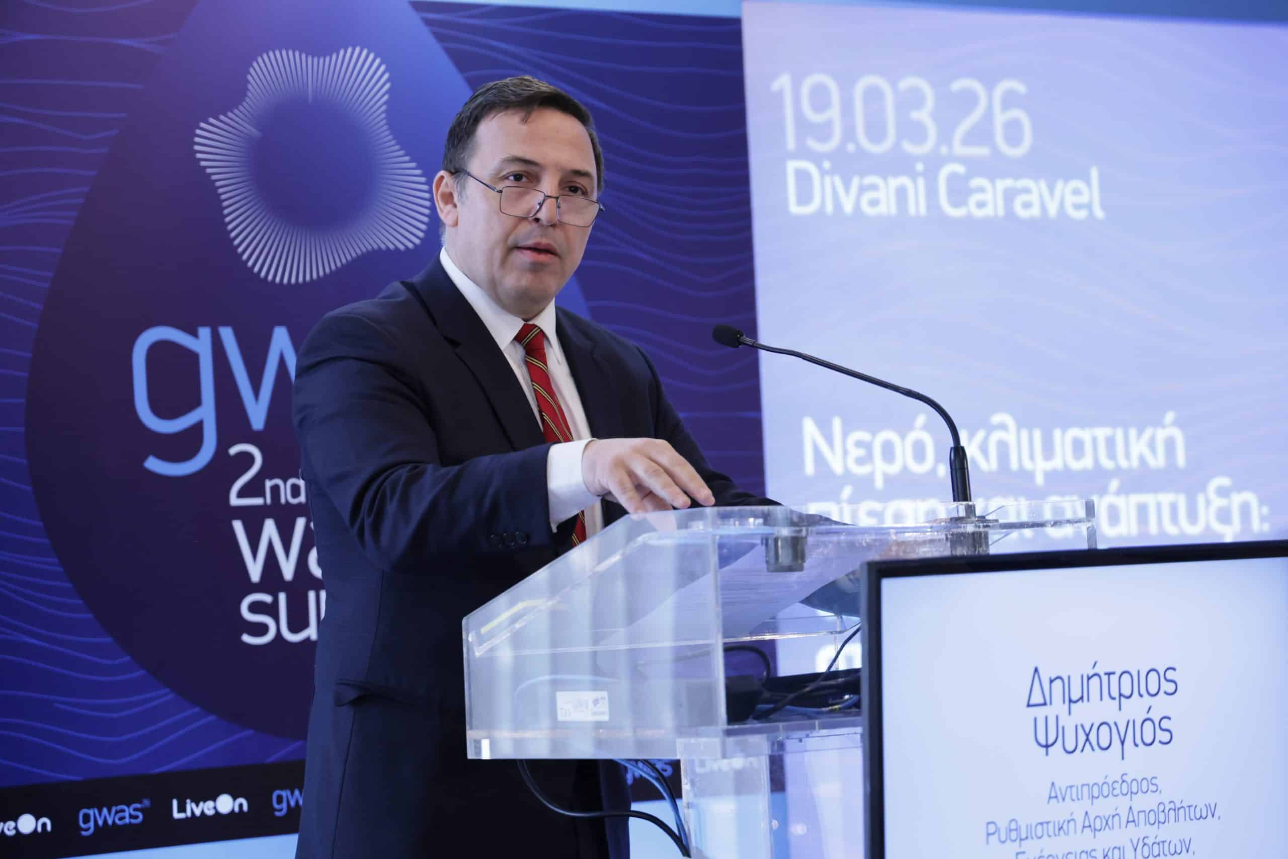 Ο καθηγητής Δημήτριος Ψυχογυιός, Αντιπρόεδρος ΡΑΑΕΥ και Πρόεδρος του Κλάδου Ρύθμισης και Εποπτείας Υπηρεσιών Ύδατος, ξεκίνησε τον θεσμικό χαιρετισμό του με την επισήμανση ότι το νερό αναδεικνύεται ένας από τους πιο κρίσιμους στρατηγικούς πόρους της χώρας, και επεξήγησε τον ρόλο της αρμόδιας ρυθμιστικής αρχής.