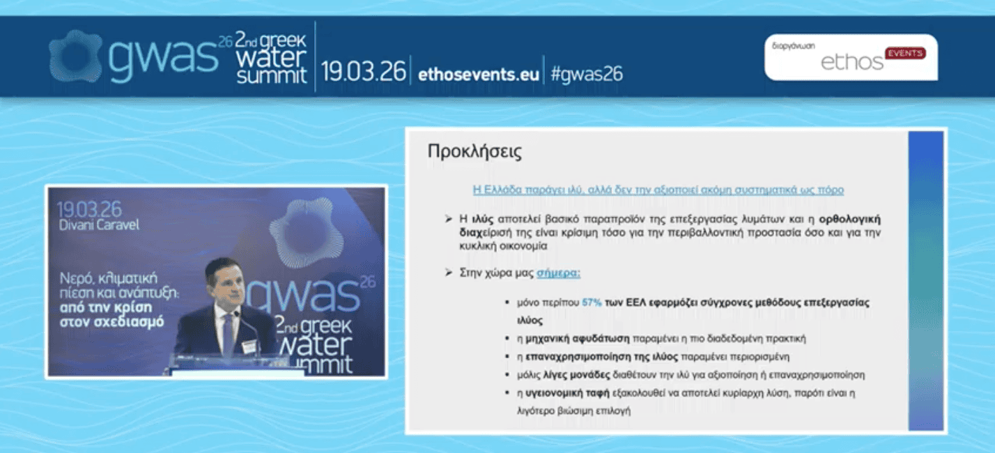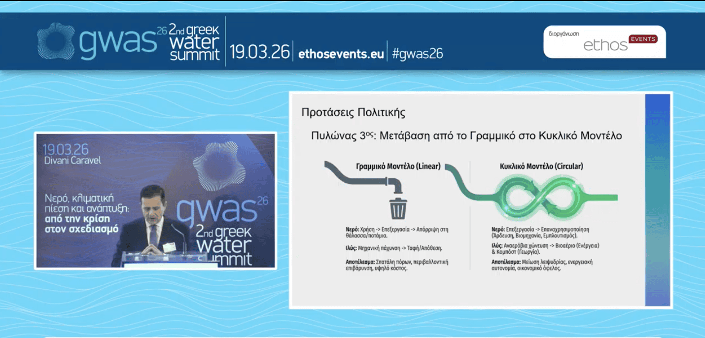 Σύμφωνα με τον ίδιο, η διαχείριση των υδάτων αποτελεί ένα κρίσιμο ζήτημα που επηρεάζει την ποιότητα τωνυδάτων αλλά και την υγεία, βιωσιμότητα και την επάρκεια πόρων μέσω της κυκλικής οικονομίας.