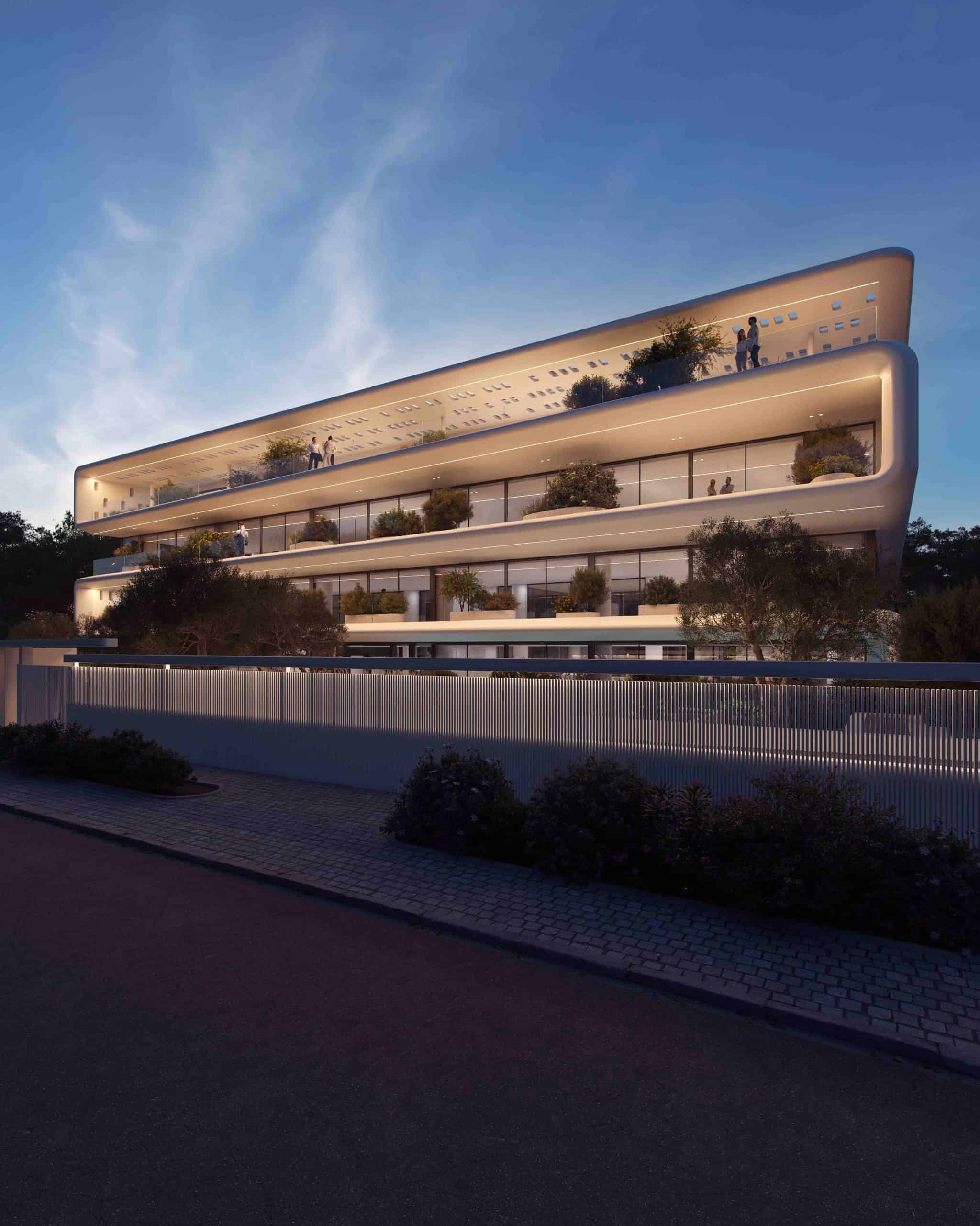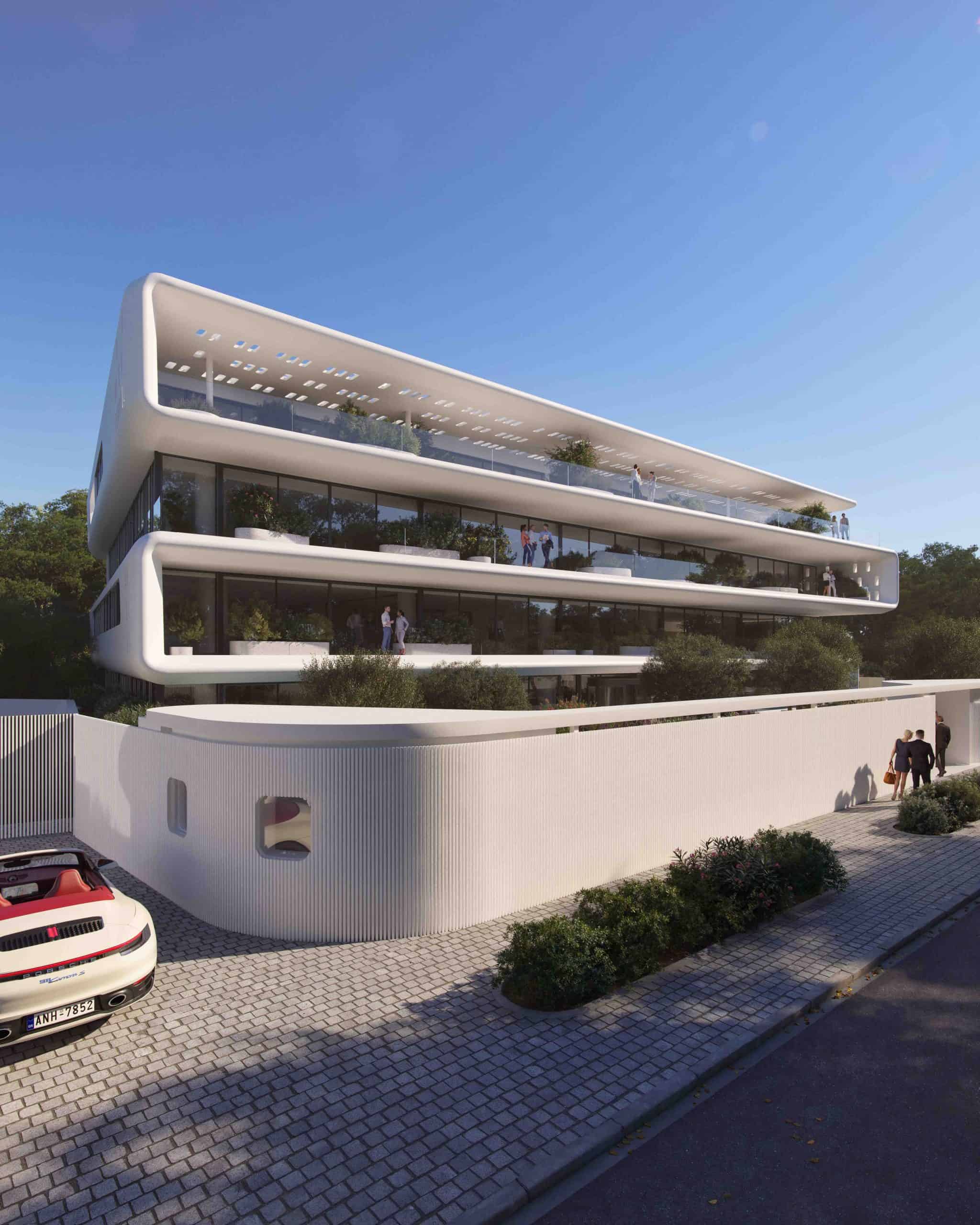 Η αρχιτεκτονική σύλληψη αναδεικνύεται μέσα από την ιδέα μιας συνεχούς, κυματιστής επιφάνειας, που μετασχηματίζει έναν στατικό όγκο σε δυναμική χωρική εμπειρία. Αντί οι όροφοι, η όψη και η στέψη να αντιμετωπίζονται ως επιμέρους, διακριτά στοιχεία, ο σχεδιασμός αντιλαμβάνεται το κτίριο ως ενιαίο, ρευστό σύστημα που αναδύεται από το έδαφος.