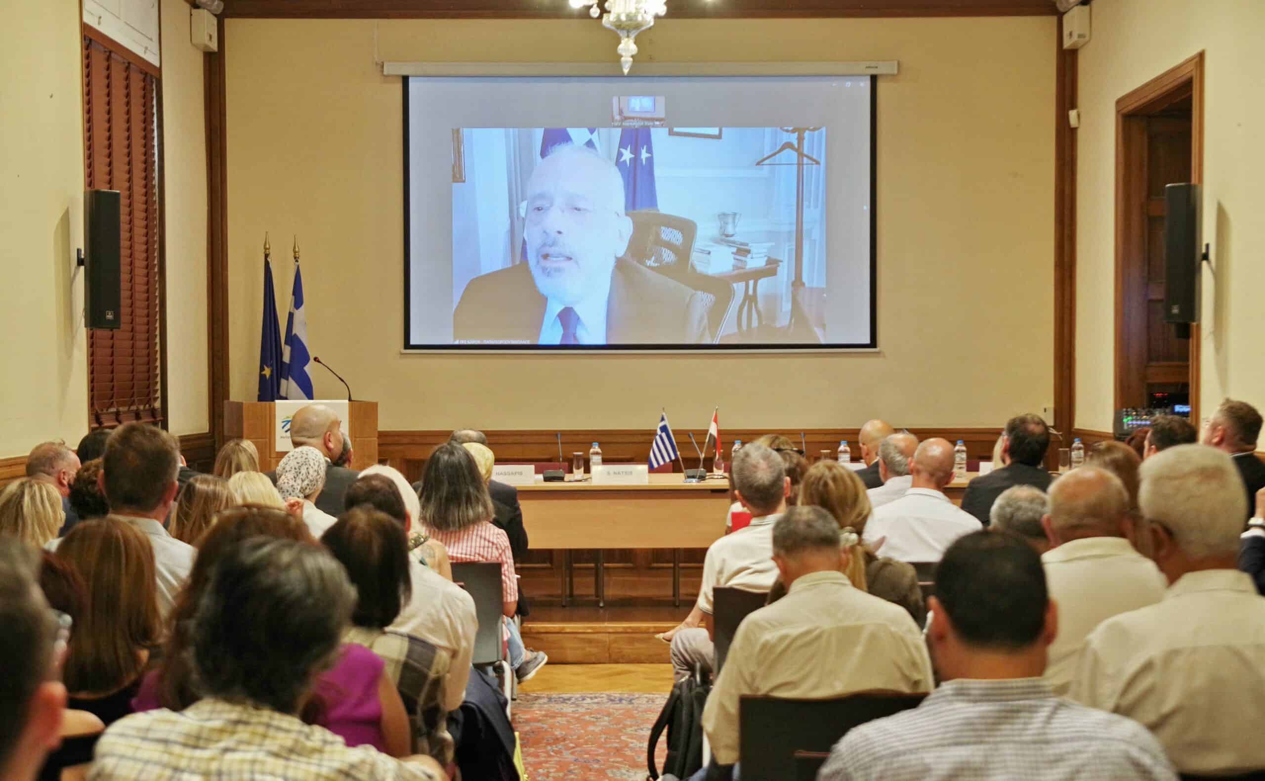 Ακολούθησαν ο παρεμβάσεις του Πρέσβη της Αιγύπτου στην Ελλάδα, Εξοχ. κ. Omar Amer Youssef και του Πρέσβη της Ελλάδας στην Αίγυπτο, Εξοχ. κ. Νικόλαου Παπαγεωργίου (μέσω τηλεδιάσκεψης). Αμφότεροι τόνισαν τη στρατηγική σημασία των διμερών σχέσεων, ενθαρρύνοντας τις ελληνικές επιχειρήσεις να διερευνήσουν συνεργασίες με την Αίγυπτο, κυρίως σε τομείς όπου διαθέτουν τεχνογνωσία και ανταγωνιστικά πλεονεκτήματα.