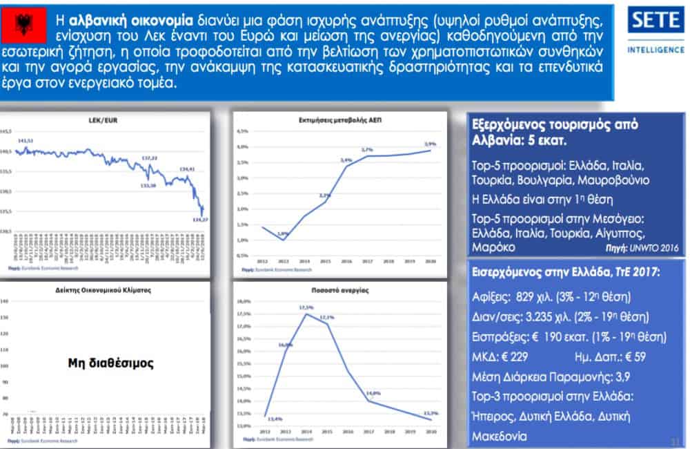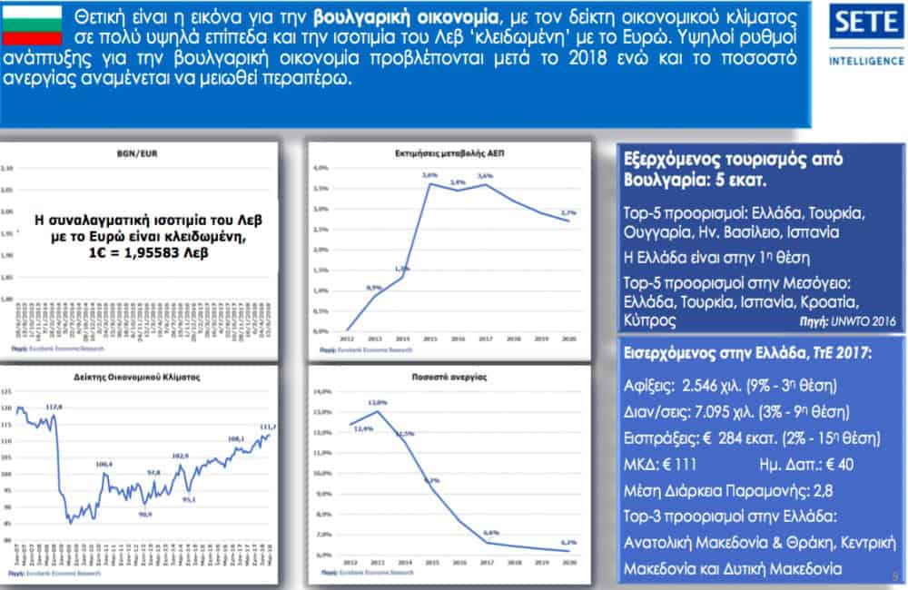 Οι οικονομικές εξελίξεις των εξεταζόμενων αγορών εμφανίζουν μικτή εικόνα με τις αγορές της Βουλγαρίας, της Αλβανίας, της Σερβίας, της Πολωνίας και της ΠΓΔΜ να είναι θετικές, ενώ αρνητικές είναι οι εξελίξεις στην Ρουμανία (επιβράδυνση της οικονομίας) και την Τουρκία (διαρκής υποτίμηση της τουρκικής Λίρας και περαιτέρω επιδείνωση του οικονομικού κλίματος).