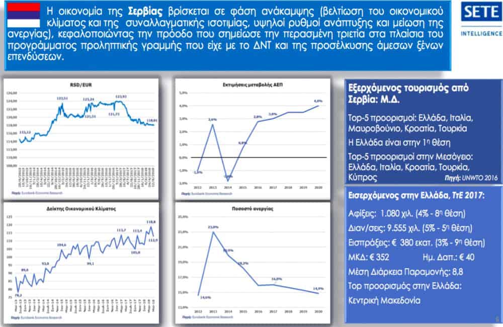 Αυξημένος κατά 30% ήταν ο αριθμός των ταξιδιωτών που προσήλθε οδικώς Ελλάδα το 2017 από τις 6 μεγαλύτερες αγορές των Βαλκανίων (Σερβία, Ρουμανία, Βουλγαρία, Τουρκία, Αλβανία, ΠΓΔΜ), πλέον η Πολωνία, φτάνοντας στα 8,3 εκατ., σύμφωνα με τον ΣΕΤΕ. Χαρακτηριστικό των τουριστών αυτών είναι η δυνατότητα που έχουν να αλλάξουν ή να επιλέξουν προορισμό την ‘τελευταία στιγμή’ χωρίς να τους απασχολούν ακυρωτικά κόστη, όπως με τα αεροπορικά εισιτήρια. Ως εκ τούτου το οικονομικό κλίμα που επικρατεί στις αντίστοιχες αγορές είναι καθοριστικό για τις επιλογές διακοπών που θα κάνουν οι κάτοικοί τους.