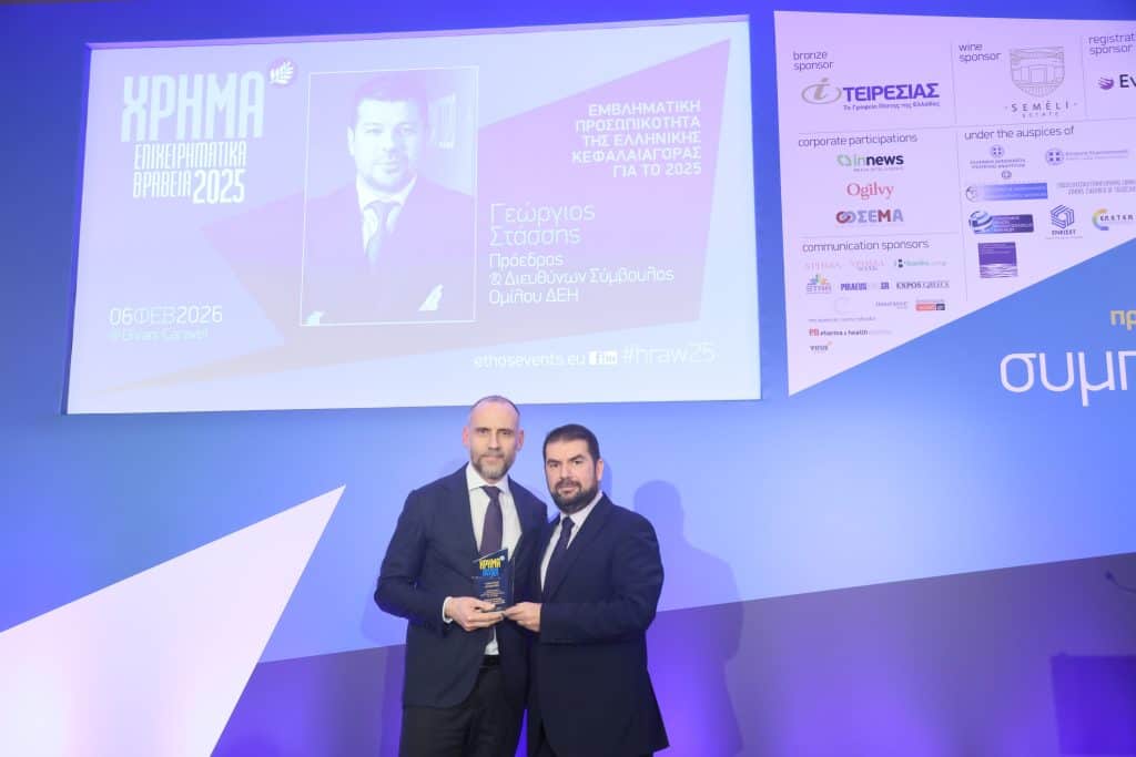 Την τιμητική διάκριση «Εμβληματική Προσωπικότητα της Ελληνικής Κεφαλαιαγοράς για το 2025» έλαβε ο Γεώργιος Στάσσης, Πρόεδρος & Διευθύνων Σύμβουλος του Ομίλου ΔΕΗ.