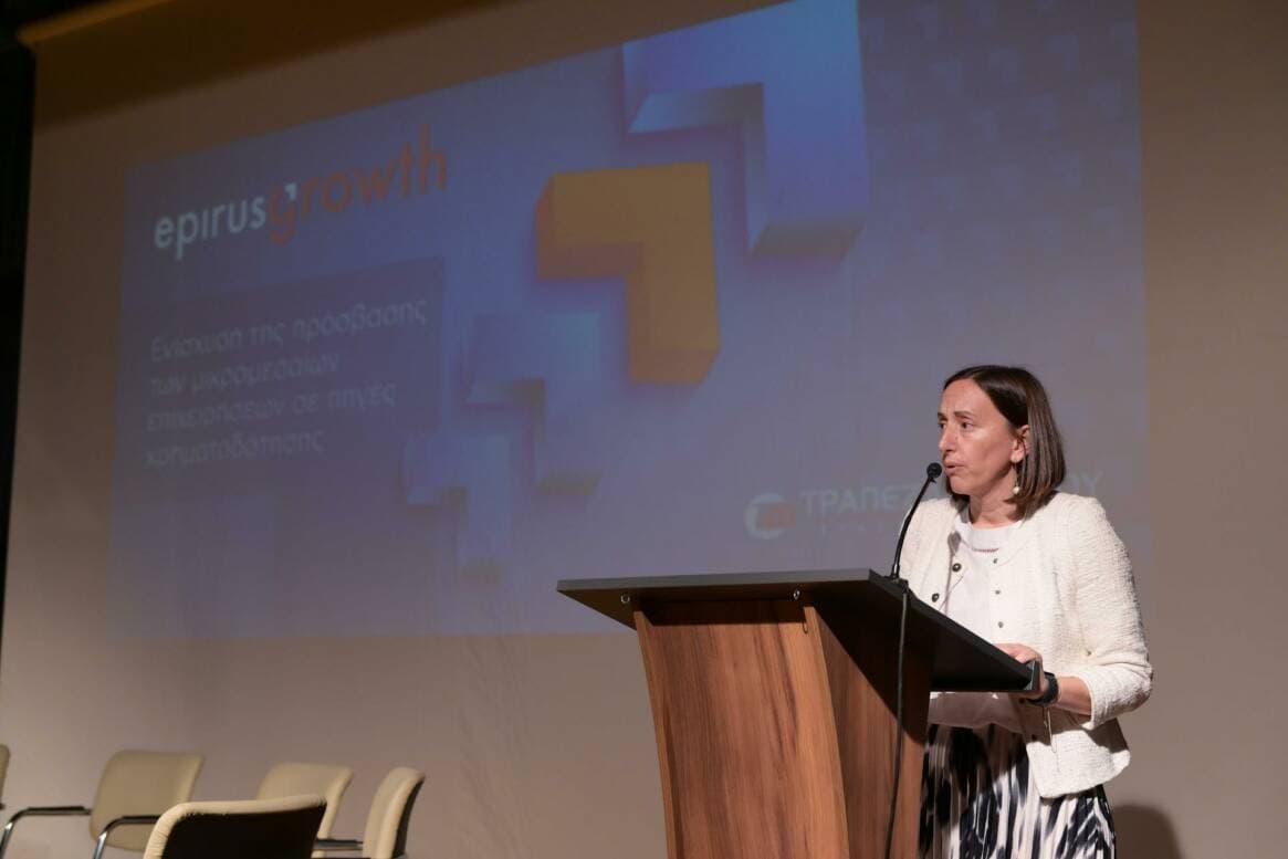 Στη συνέχεια, τον λόγο έλαβε η Διευθύνουσα Σύμβουλος της Ελληνικής Αναπτυξιακής Τράπεζας κ. Ισμήνη Παπακυρίλλου, η οποία παρουσίασε τη συνολική χρηματοδοτική παρέμβαση για την ενίσχυση της μικρομεσαίας επιχειρηματικότητας. Η κ. Παπακυρίλλου επικεντρώθηκε εμφατικά στις καινούργιες δυνατότητες που προσφέρει το νέο χρηματοδοτικό εργαλείο ΤΕΠΙΧ ΙΙΙ, το οποίο καθιστά τη χρηματοδότηση περισσότερο προσβάσιμη και διευρυμένη για κάθε μικρομεσαία επιχείρηση με στοιχειωδώς υγιή οικονομικά μεγέθη.