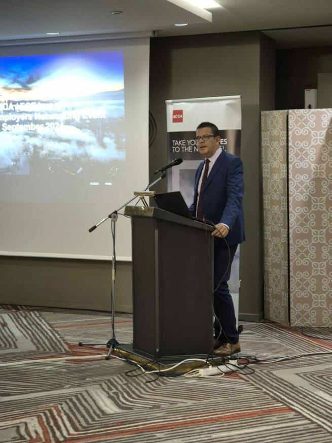 Ο κ. Άγγελος Διονυσόπουλος, Audit Partner στην ελεγκτική εταιρεία ΣΟΛ CROWE και μέλος του Εποπτικού Συμβουλίου του ΣΟΕΛ, αναφέρθηκε στην επιτυχημένη συνεργασία ΣΟΕΛ και ACCA, η οποία μετρά 15 χρόνια, καθώς και στα Προγράμματα Πιστοποίησης που παρέχουν από κοινού οι δύο φορείς στην Ελλάδα.