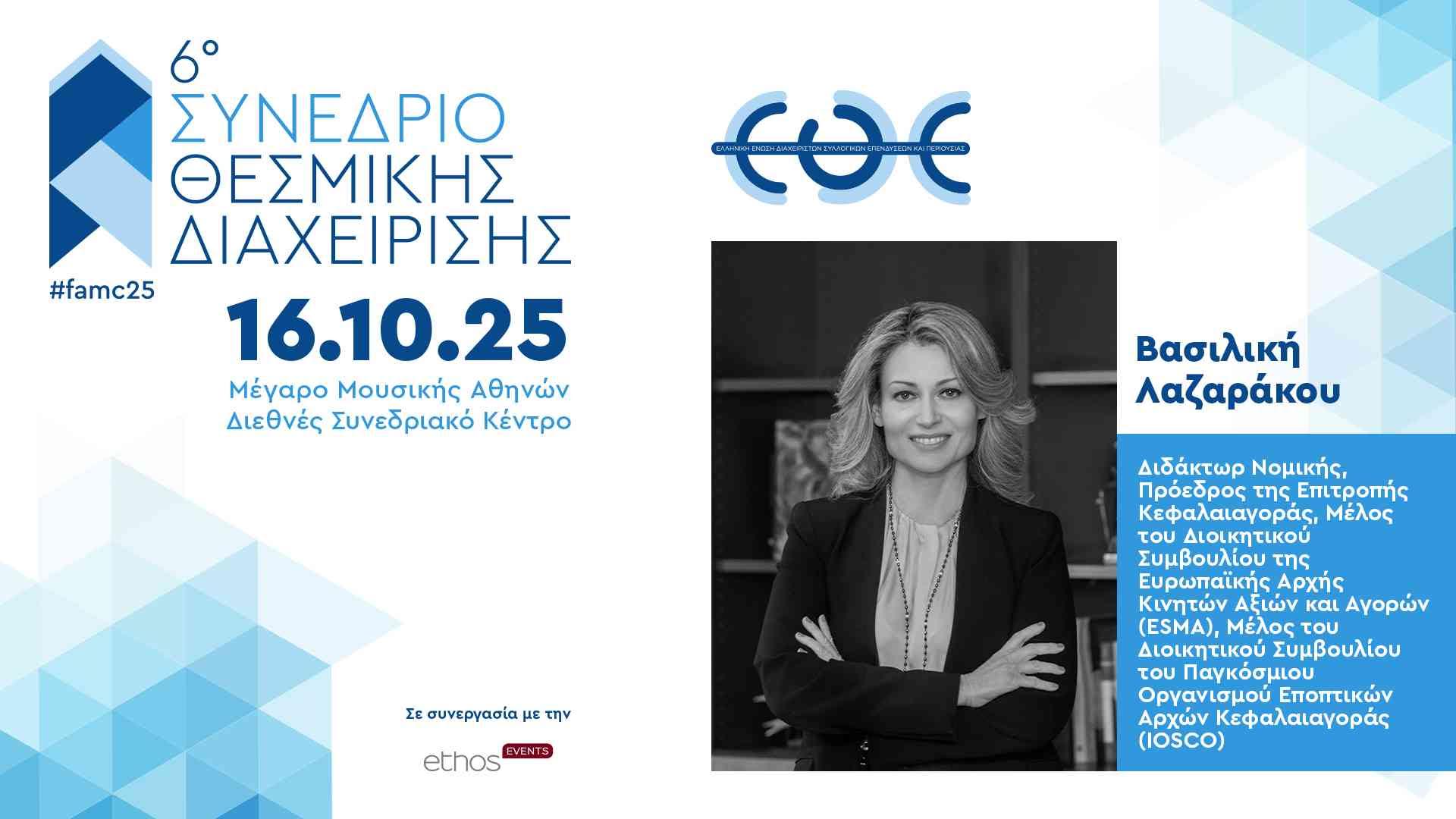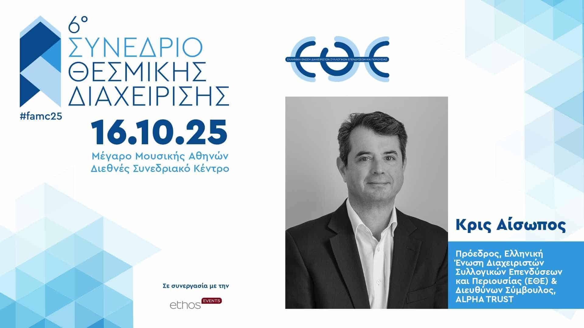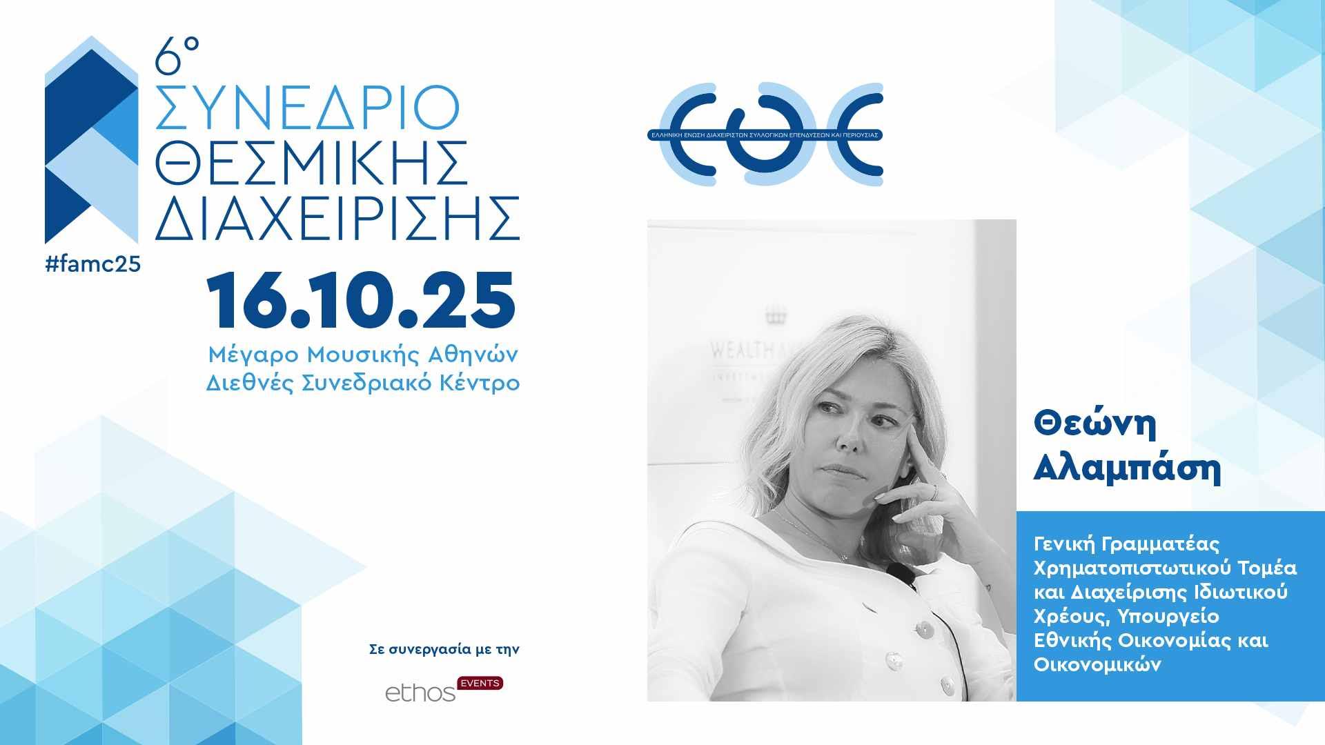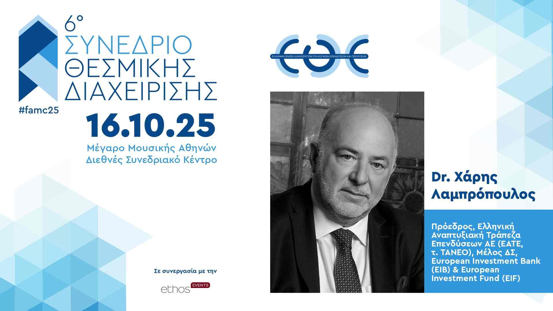 Την Πέμπτη 16 Οκτωβρίου 2025, η Ένωση Θεσμικών Επενδυτών διοργανώνει το 6ο Συνέδριο Θεσμικής Διαχείρισης στο Μέγαρο Μουσικής Αθηνών- Διεθνές Συνεδριακό Κέντρο.