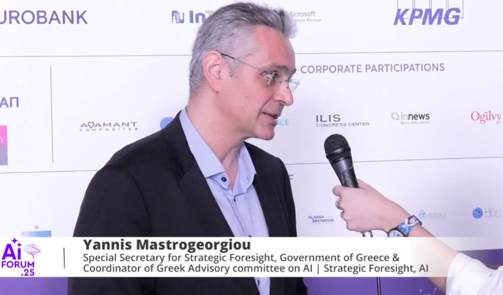 O Γιάννης Μαστρογεωργίου Ειδικός Γραμματέας Μακροπρόθεσμου Σχεδιασμού | Συντονιστής της Επιτροπής Τεχνητής Νοημοσύνης, Προεδρία της Ελληνικής Κυβέρνησης μίλησε στην κάμερα του Banks: