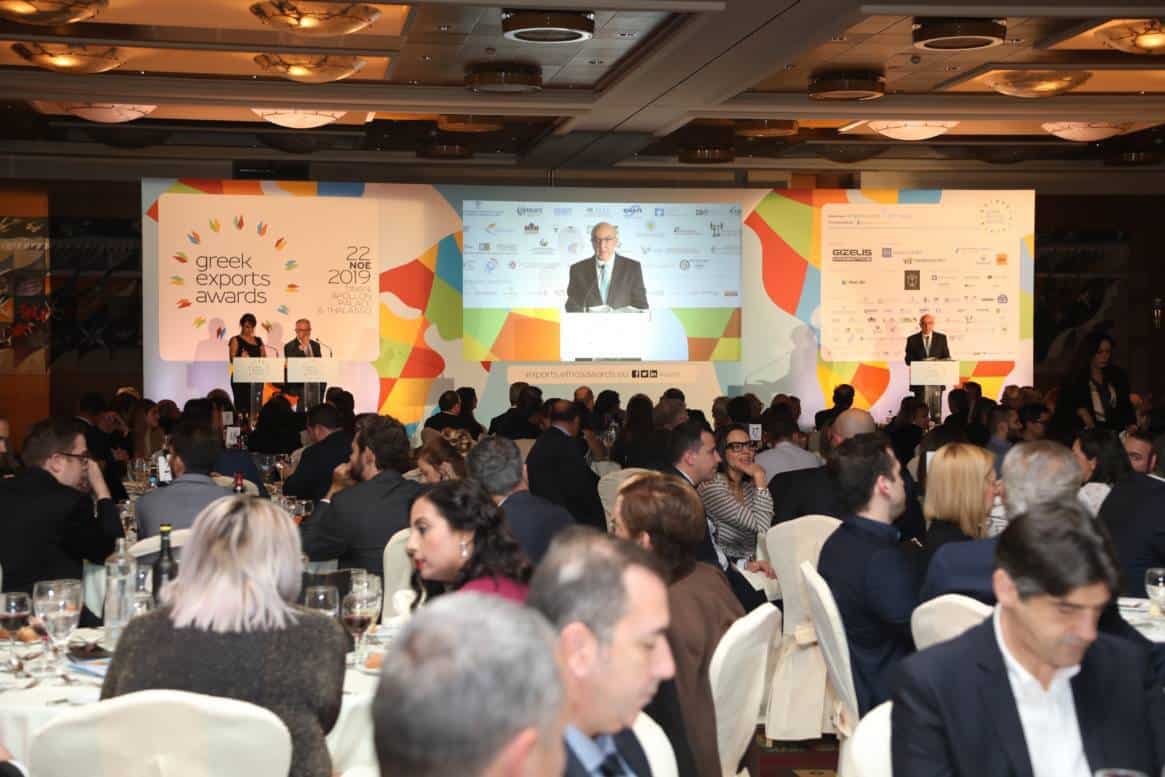 Περισσότερα από 300 άτομα, επιχειρηματίες και στελέχη εξαγωγικών εταιρειών, εκπρόσωποι θεσμικών φορέων και επίσημοι προσκεκλημένοι παρακολούθησαν την Τελετή Απονομής των Greek Exports Awards 2019 (#gea19 http://exports.ethosawards.eu) στην οποία βραβεύτηκαν οι κορυφαίες εξαγωγικές εταιρείες για το 2019 και πραγματοποιήθηκε στις 22 Νοεμβρίου 2019, στην ασφυκτικά γεμάτη αίθουσα του ξενοδοχείου Divani Apollon Palace & Thalasso.