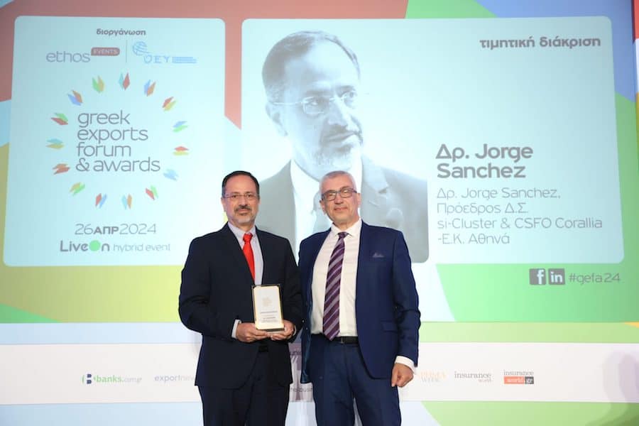 Εφέτος δόθηκαν τρεις τιμητικές διακρίσεις, Honorary Export Distinction, στους κ.κ. Σοφία Κουνενάκη Εφραίμογλου, Πρόεδρο Εμπορικού και Βιομηχανικού Επιμελητηρίου Αθηνών (ΕΒΕΑ), Δρ. Jorge Sanchez, Πρόεδρο Δ.Σ. si-Cluster & CFSO Corallia-Ε.Κ. Αθηνά και Δρ. Αθανάσιο Πότση, Πρόεδρο Δ.Σ. Ένωσης Ελληνικών Βιομηχανιών Διαστημικής Τεχνολογίας & Εφαρμογών (ΕΒΙΔΙΤΕ).