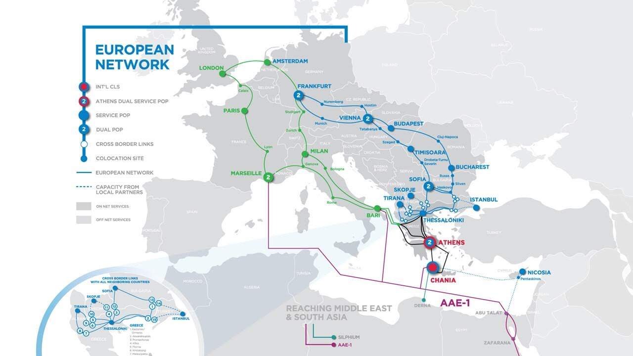 Ειδικότερα, ανέφερε ότι η Ελλάδα συνδέεται μέσω Μεσογείου με ένα από τα μεγαλύτερα διηπειρωτικά καλώδια σήμερα, το Asia-Africa-Europe-1 (ΑΑΕ1), στο οποίο ο ΟΤΕ συμμετέχει μαζί με άλλους μεγάλους παρόχους. Το καλώδιο αυτό, μήκους 25.000 χιλιομέτρων, που ξεκινά από το Χονγκ Κονγκ, καταλήγει στη χώρα μας στα Χανιά της Κρήτης. Όπως σημείωσε ο κ. Κωνσταντινίδης, «η χωρητικότητά του είναι τεράστια, ικανή να εξυπηρετήσει περίπου 60 Tbps, δηλαδή περίπου 12 φορές τη συνολική κίνηση ευρυζωνικότητας της Ελλάδας». Και πρόσθεσε: «Πέρα από την υποθαλάσσια υποδομή, υπάρχουν και οι επίγειες cross-border διασυνδέσεις με όλες τις γειτονικές χώρες και ειδικότερα με την Τουρκία που αποτελεί μια επιπλέον βασική πύλη της χώρας για την κίνηση εξ’ ανατολών. Εκεί έχουμε cross-border interconnection της τάξης των 10Tbps.»