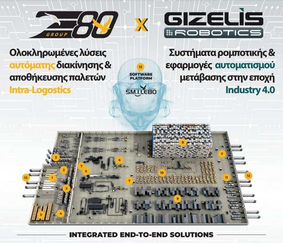 Στο πλαίσιο της συνεργασίας, η Gizelis Robotics λειτουργεί ως subcontractor για τα συστήματα end-of-line automation, τα οποία ενσωματώνονται πλήρως στη συνολική αρχιτεκτονική intralogistics της E80 Group.