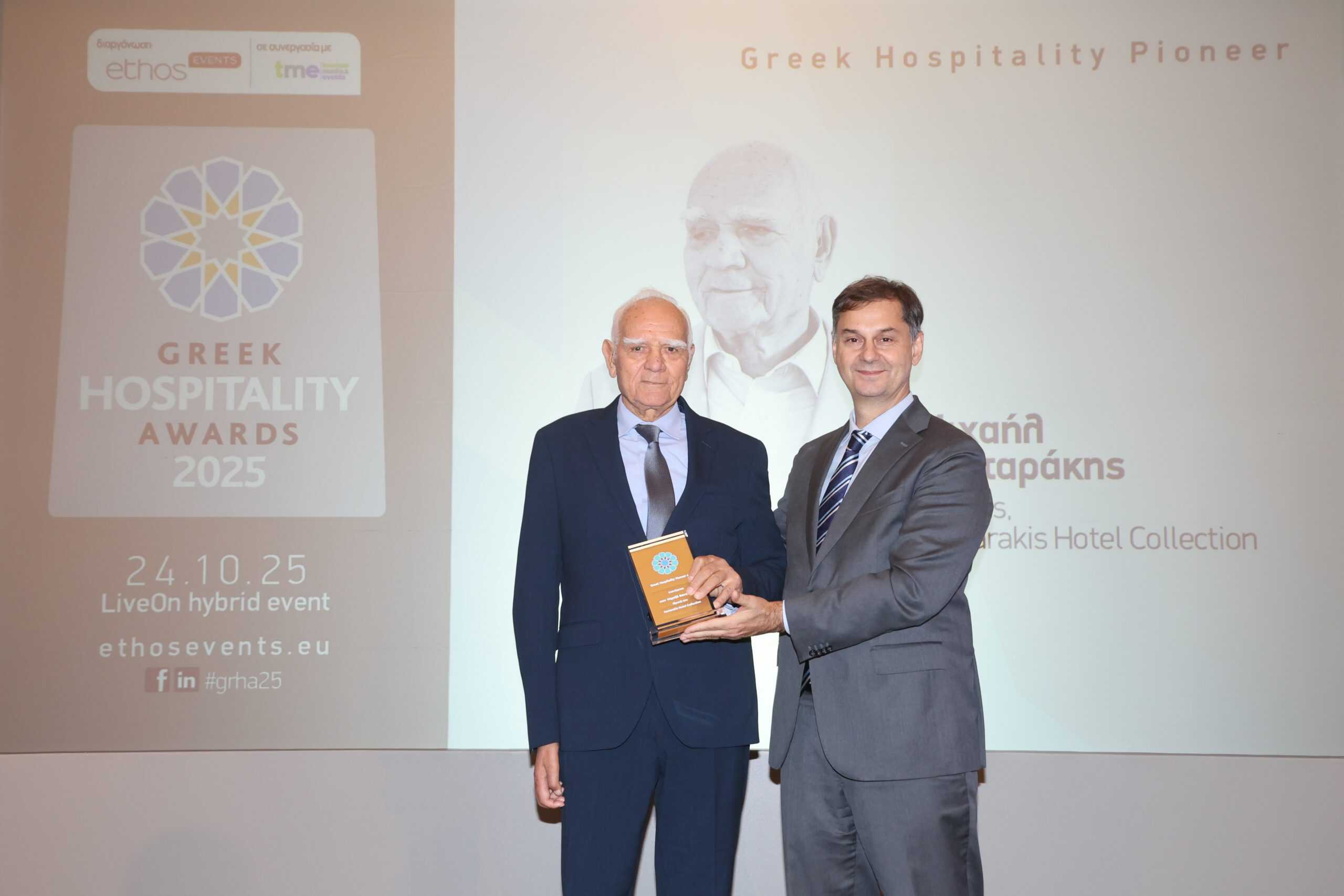 Με τη συμμετοχή κυβερνητικών στελεχών, θεσμικών φορέων, καθώς και των σημαντικότερων τουριστικών επιχειρήσεων της Ελλάδας πραγματοποιήθηκαν τα Greek Hospitality Awards 2025, από την ethosEVENTS. Τα βραβεία Greek Hospitality Awards, ο πλέον καταξιωμένος θεσμός επιβράβευσης της ελληνικής φιλοξενίας, απονεμήθηκαν, για 11η συνεχή χρονιά, υπό την αιγίδα του Ελληνικού Οργανισμού Τουρισμού.