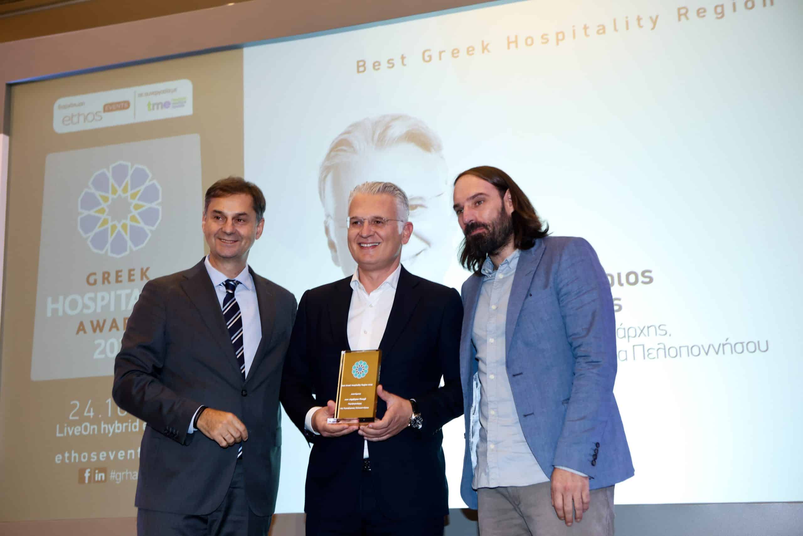 Ο περιφερειάρχης Πελοποννήσου, κ. Δημήτριος Πτωχός, παραλαμβάνοντας τη διάκριση Best Greek Hospitality Region, δήλωσε: «Είναι τιμή και χαρά να λαμβάνουμε το βραβείο για την προσπάθειά μας. Η Πελοπόννησος έχει τεράστιο πολιτιστικό απόθεμα, εξαίρετους ανθρώπους. Κάνουμε μια ωραία προσπάθεια να ενισχύσουμε τον τουριστικό τομέα και έχουμε πολλά περιθώρια βελτίωσης. Με καλό σχεδιασμό, συλλογική συνεισφορά και στρατηγικό σχέδιο, θα φτάσουμε εκεί που θέλουμε».