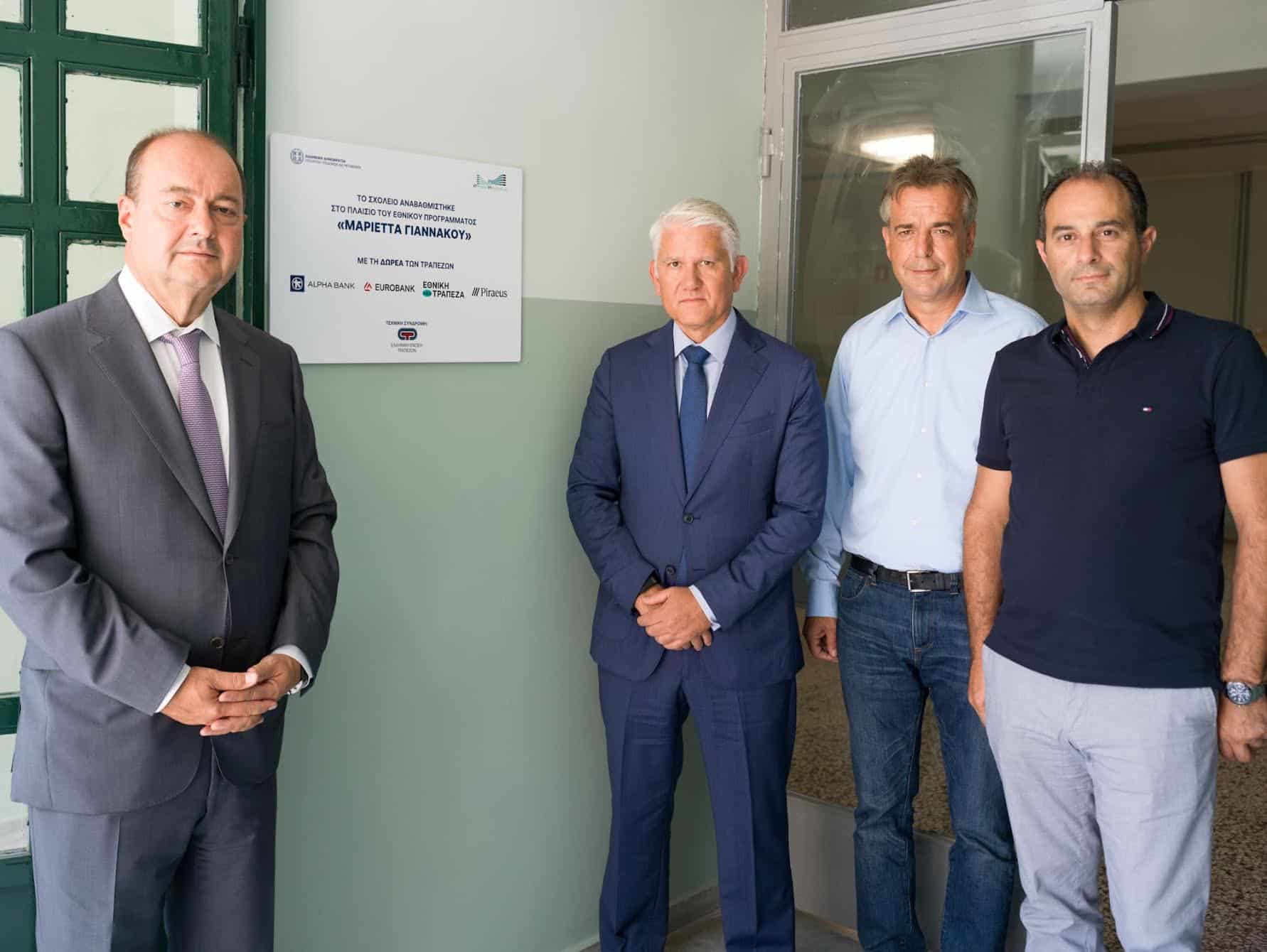 Η Alpha Bank αποτελεί εταίρο στο Πρόγραμμα «Μαριέττα Γιαννάκου», ως μία από τις τέσσερις συστημικές τράπεζες που χρηματοδοτούν την ανακαίνιση 430 δημόσιων σχολικών κτιρίων σε όλη την Ελλάδα. Κατά την επίσκεψη στο τοπικό σχολείο, ο Πρόεδρος Δ.Σ. και ο Deputy CEO, μαζί με τον Communications and Corporate Affairs Director ΓιώργοΤερζή, συναντήθηκαν με τον Πρόεδρο και τον Διευθύνοντα Σύμβουλο της Εταιρείας “Κτιριακές Υποδομές Α.Ε.” (ΚΤΥΠ), Τιμολέοντα Κατσίπο και Αθανάσιο Γιάνναρη, ξεναγήθηκαν στις εγκαταστάσεις και ενημερώθηκαν για τις παρεμβάσεις και τα έργα που έχουν ολοκληρωθεί, με στόχο τη βελτίωση των υποδομών και των δυνατοτήτων που προσφέρονται στους μαθητές.