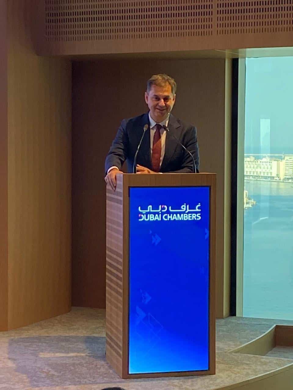 Ακολούθησε η παρουσίαση του κ. Mohammad Alkassim, Director – Europe and The Americas Region, International Relations, Dubai Chambers, με θέμα «Why Dubai», στην οποία ανέδειξε τη στρατηγική θέση του Ντουμπάι ως παγκόσμιου κόμβου τουρισμού και επενδύσεων και παρουσίασε την ισχυρή πλατφόρμα που προσφέρει σε περιφερειακούς και διεθνείς επενδυτές.