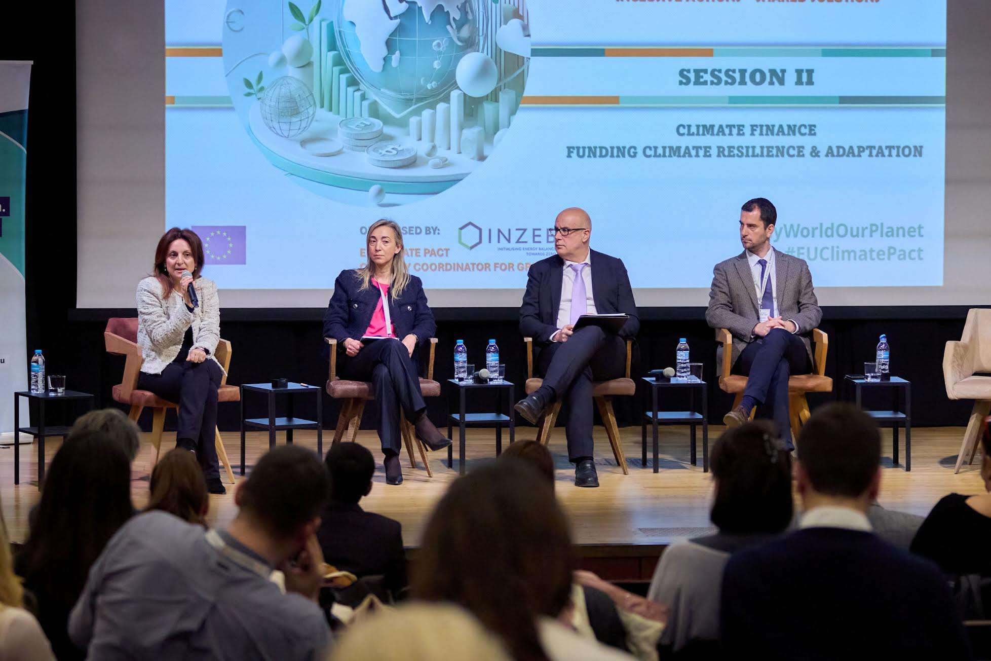 Στην ενότητα για τη Χρηματοδότηση της Κλιματικής Ανθεκτικότητας και Προσαρμογής, εμπειρογνώμονες στον τομέα των οικονομικών και της κλιματικής πολιτικής ανέδειξαν επιτυχημένους μηχανισμούς χρηματοδότησης, τόσο από δημόσιες όσο και από ιδιωτικές πηγές, καθώς και τον ρόλο των τραπεζών και τη συμβολή των διεθνών οργανισμών στη χρηματοδότηση της δράσης για το κλίμα. Στο πάνελ συμμετείχαν, μεταξύ άλλων, η κα Μαριάννα Ναθαναήλ, Επικεφαλής του Γραφείου της Ευρωπαϊκής Τράπεζας Επενδύσεων στην Ελλάδα, και ο κ. Παναγιώτης Χαμπέσης, Επικεφαλής του Τμήματος Αναπτυξιακών Προγραμμάτων και Βιωσιμότητας της Ένωσης Ελληνικών Τραπεζών.
