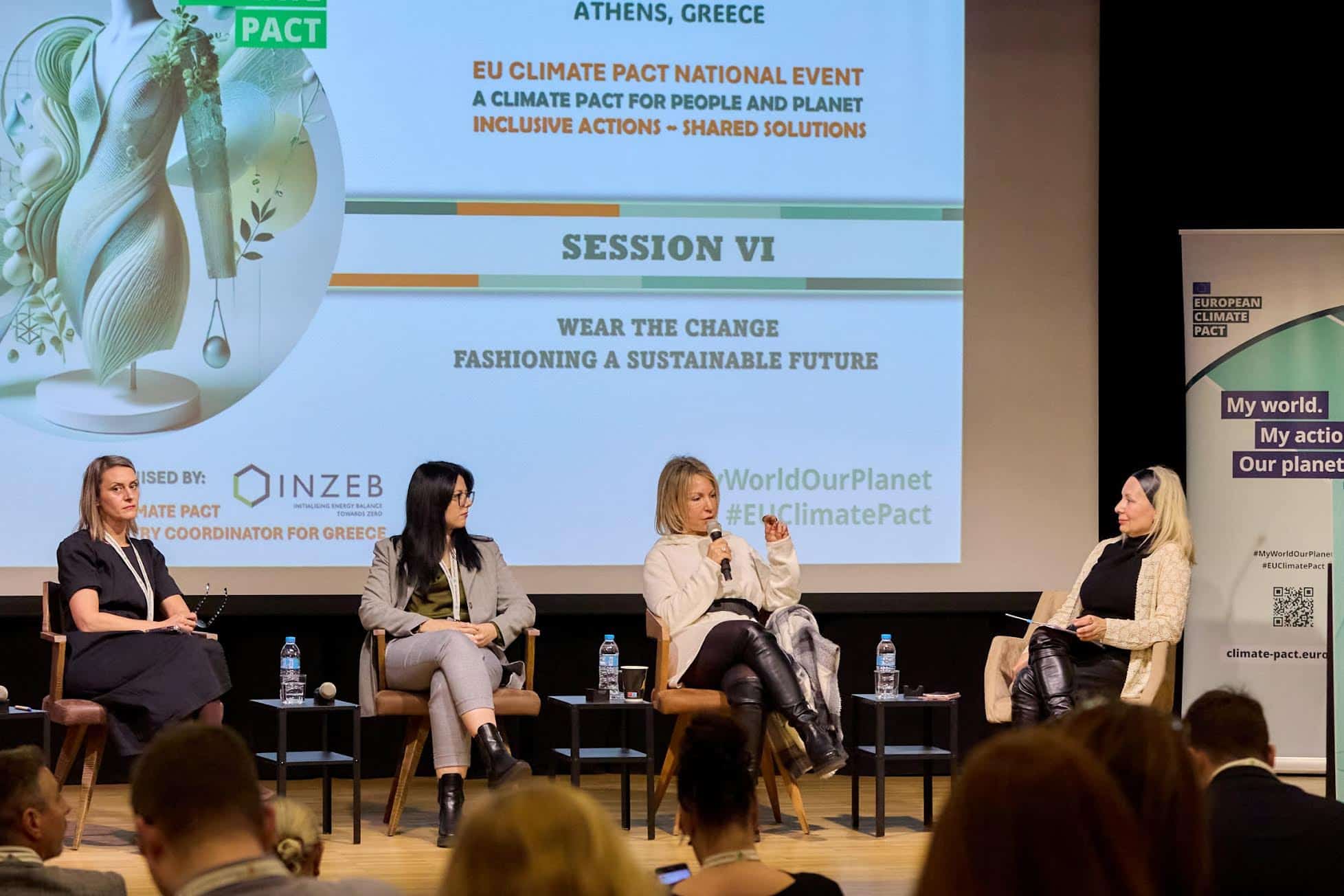 Η εκδήλωση ξεκίνησε με χαιρετισμούς από την κα Αλίς Κοροβέση, Επικεφαλής Ομάδας Συντονισμού EU Climate Pact στην Ελλάδα, Διευθύνουσα Σύμβουλος ΙΝΖΕΒ, την κα Ευαγγελία Γεωργίτση, Υπεύθυνη Επικοινωνίας της Αντιπροσωπείας της Ευρωπαϊκής Επιτροπής στην Ελλάδα, και τους Έλληνες Πρεσβευτές του Ευρωπαϊκού Συμφώνου για το Κλίμα, κ. Ελευθέριο Κεχαγιόγλου, Πρόεδρο του Ελληνικού Δικτύου Μικρών Νησιών, και κα Βανέσα Αρχοντίδου, Ιδρύτρια του Οργανισμού AWomanCanBe.org.