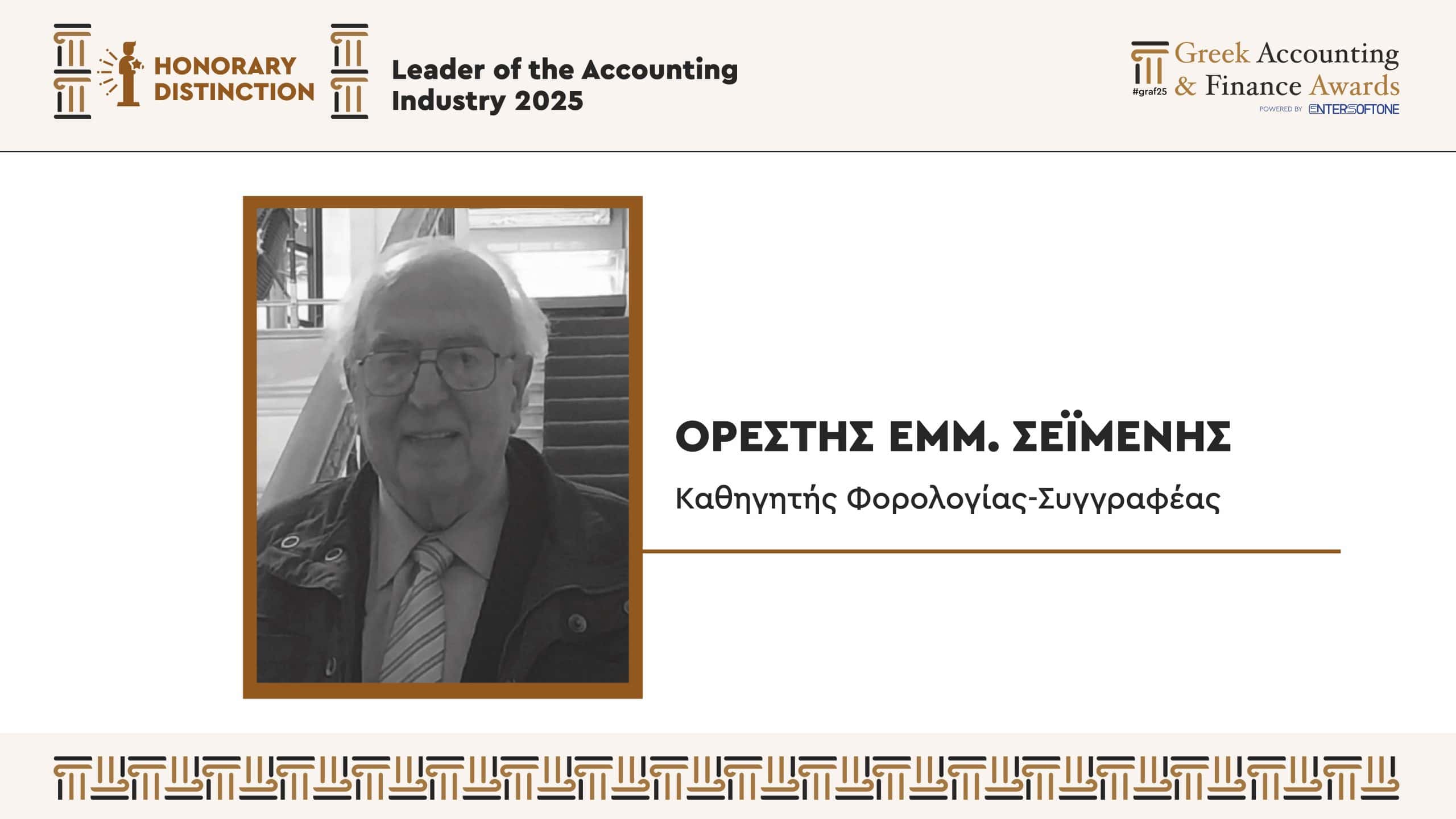 Ορέστης Εμμ. Σεϊμένης, Καθηγητής Φορολογίας – Συγγραφέας | Leader of the Accounting Industry 2025