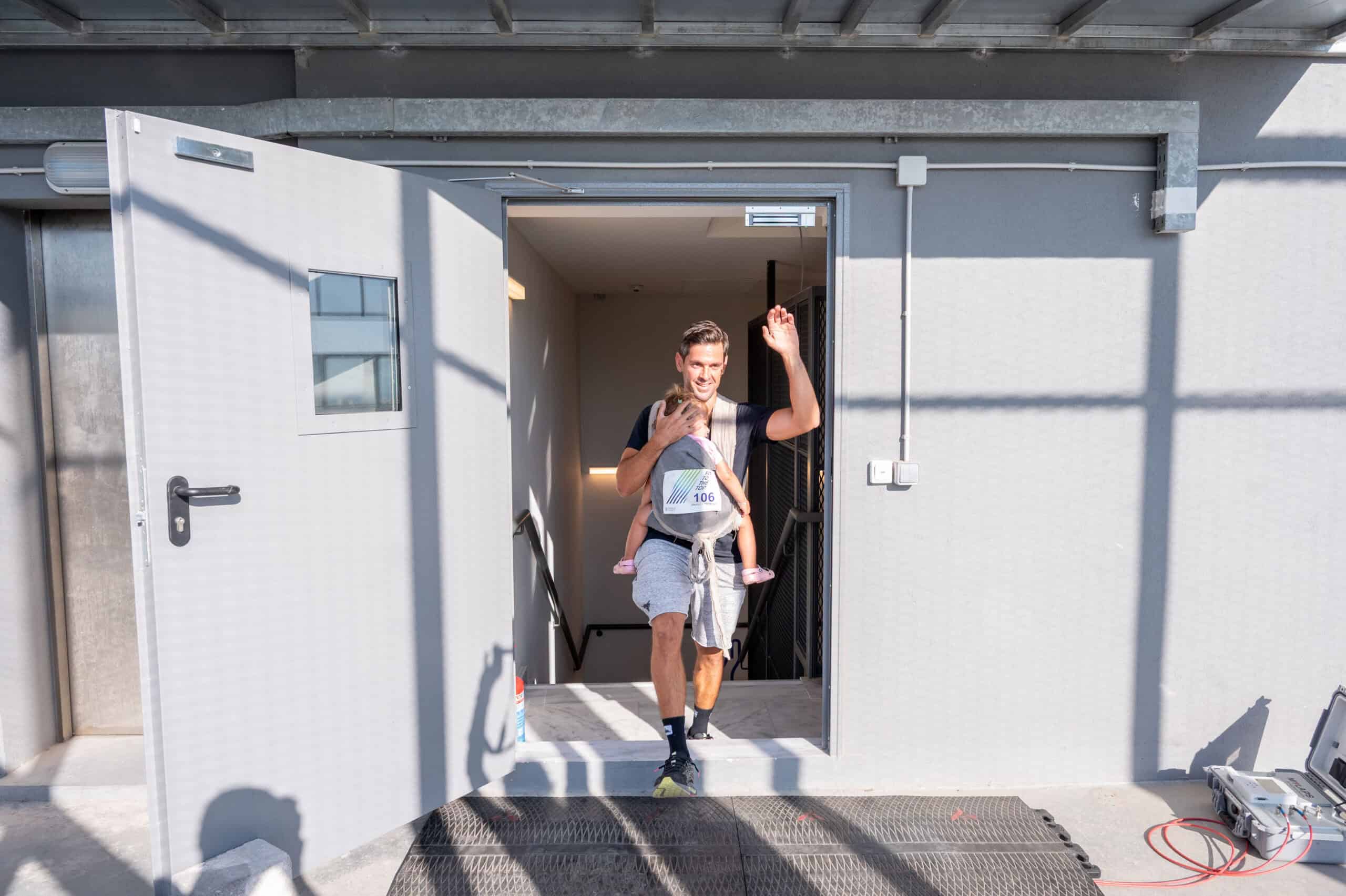 Το ίδιο βράδυ στις όψεις του Πύργου, προβλήθηκε το μήνυμα “RUN TO THE TOP” αλλά και το όνομα του αθλητή με τον καλύτερο χρόνο, τιμώντας την προσπάθεια όλων. Ο Δημήτρης Θεοδωρακάκος, διακεκριμένος αθλητής – δρομέας μεγάλων αποστάσεων, κατέκτησε την κορυφή σε μόλις 2 λεπτά και 52 δευτερόλεπτα.