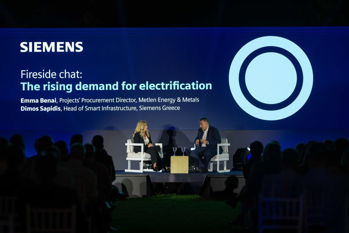 Ακολούθησε συζήτηση fireside chat μεταξύ των κ.κ. Δήμου Σαπίδη και Έμμας Μπενάι, Projects’ Procurement Director της METLEN, με τίτλο “The rising demand for electrification”. Η κα Μπενάι τόνισε ότι η METLEN, ως διεθνής βιομηχανική και ενεργειακή εταιρεία, ευθυγραμμίζει τη στρατηγική της με στόχο την επιτάχυνση της ενεργειακής μετάβασης και την ενσωμάτωση των ΑΠΕ σε βιομηχανικές και αστικές υποδομές. Όπως ανέφερε, για τις αναδυόμενες τεχνολογίες όπως το blue GIS, «Η METLEN αναζητά συνεργάτες που μοιράζονται τις αξίες της και διαθέτουν τεχνική εξειδίκευση, δέσμευση στη βιωσιμότητα και στις προηγμένες ψηφιακές λύσεις».