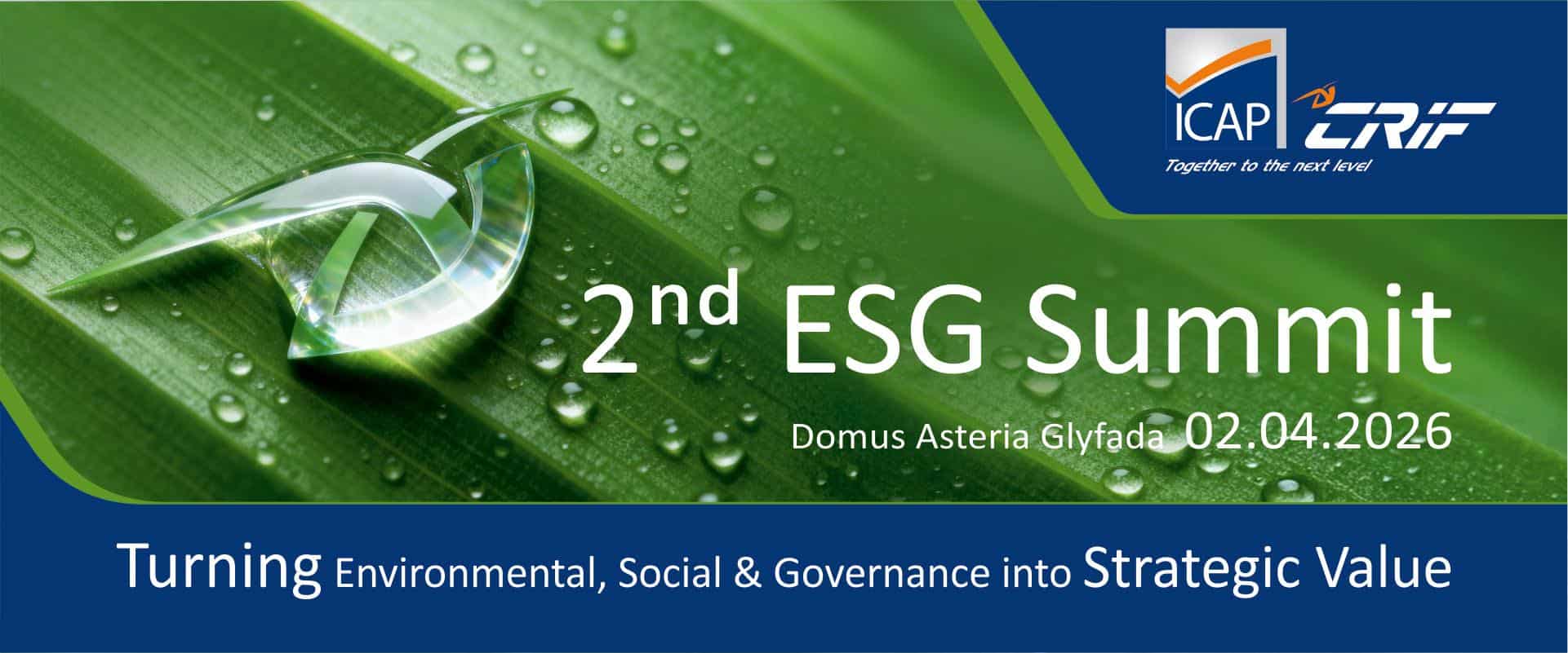 H ICAP CRIF επιστρέφει με το 2ο ESG Summit, την Πέμπτη, 2 Απριλίου 2026, στα Asteria Γλυφάδας (Domus), μετά από την πολύ επιτυχημένη περσινή διοργάνωση, επιβεβαιώνοντας τον ηγετικό της ρόλο στον διάλογο για τη βιώσιμη επιχειρηματικότητα και τη στρατηγική ενσωμάτωση των κριτηρίων ESG.