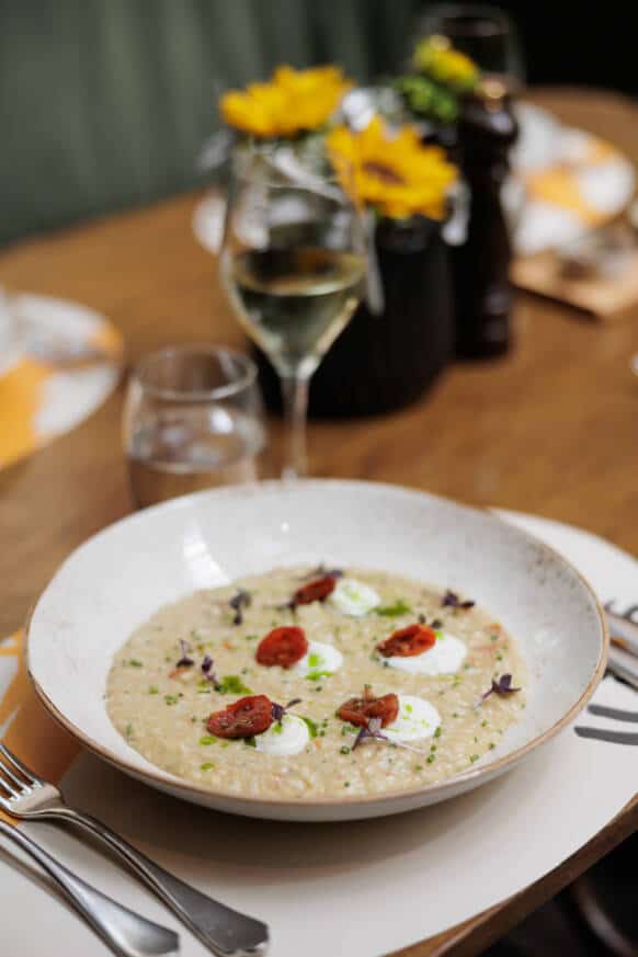 - Ριζότο με πουρέ ψητής κολοκύθας, μπριάμ λαχανικών και φασκόμηλο