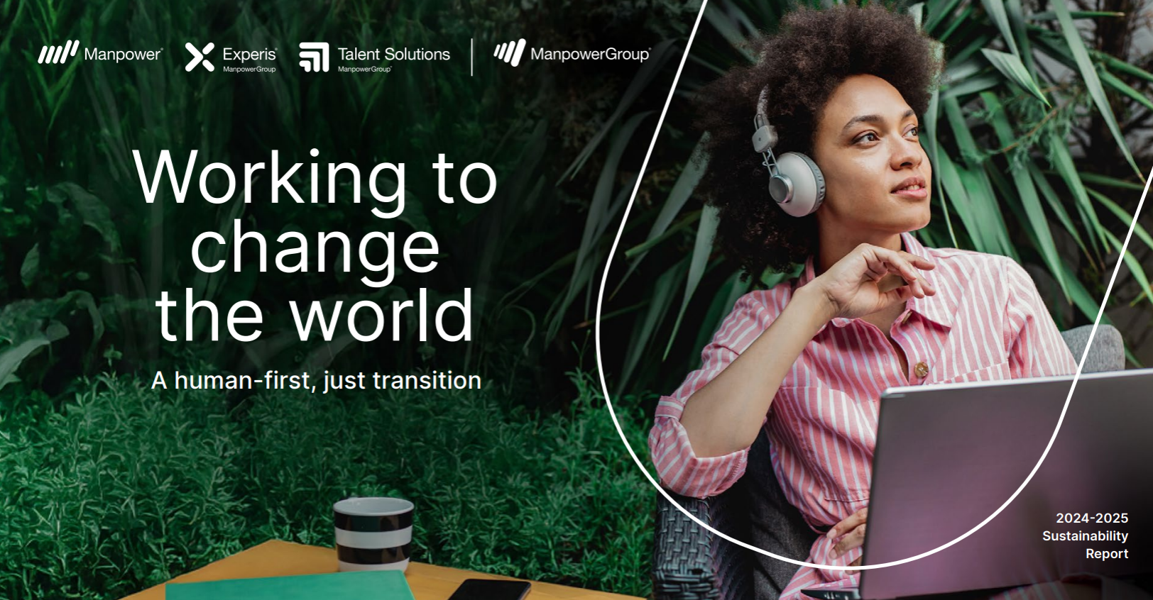 Ο όμιλος ManpowerGroup δημοσίευσε την Έκθεση ESG 2024-2025 «Working to Change the World: A Human-First, Just TransitionΠρόκειται για την πέμπτη ετήσια έκθεση, η οποία αποτυπώνει την πρόοδο στους τρεις στρατηγικούς πυλώνες βιωσιμότητας του ομίλου ManpowerGroup για τον Πλανήτη, τους Ανθρώπους & την Ευημερία και τις Αρχές Διακυβέρνησης, συμπεριλαμβανομένων των επιτευγμάτων σε θετικές δράσεις για το κλίμα, στην ανάπτυξη δεξιοτήτων (upskilling) και στη βελτίωση της απασχολησιμότητας.