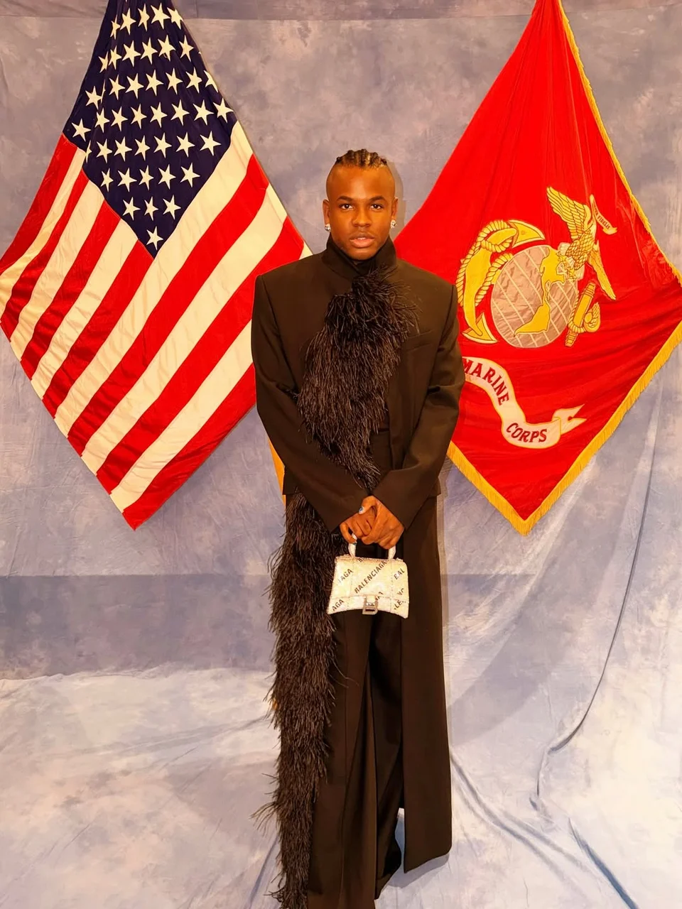 «Η μαύρη τουαλέτα ήταν Richard Quinn από το Λονδίνο. Είναι ένας μεγάλος σχεδιαστής από το Λονδίνο που έχει ντύσει τη βασίλισσα Ελισάβετ και πολλά βασιλικά μέλη. Και να εμφανιστεί με Richard Quinn είχε νόημα, γιατί είχαμε την ιδέα να παρουσιαστεί εδώ με αέρα βασιλικότητας. Το ασημί φόρεμα, επειδή ήταν πάρτι καλωσορίσματος, είπα ”ξέρεις τι, πρέπει να το κρατήσουμε κομψό και κλασάτο χωρίς υπερβολές. Και ο σχεδιαστής είναι από την Ιταλία, ο Giuseppe Di Morabito».