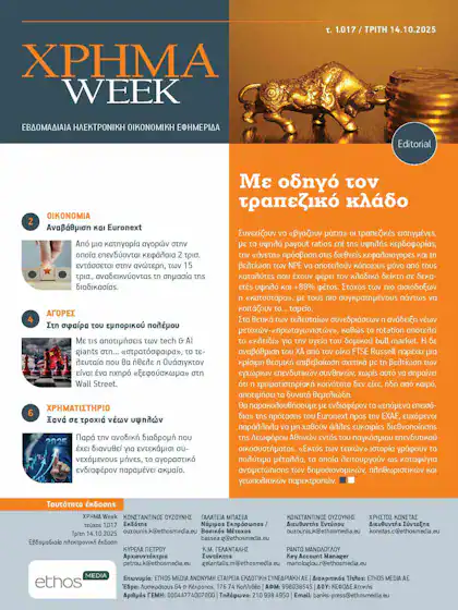 Διαβάστε στο  ΧΡΗΜΑ Week (τεύχος 1017), που κυκλοφορεί την Τρίτη 14 Οκτωβρίου με τίτλο: Με οδηγό τον τραπεζικό κλάδο
