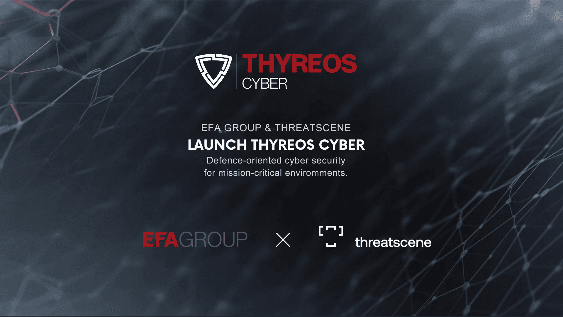 Η ThreatScene, εταιρία με εξειδίκευση στον τομέα της κυβερνοασφάλειας, και το EFA GROUP, διεθνής όμιλος με ισχυρή ελληνική παρουσία στους τομείς της Άμυνας, της Ασφάλειας και της Αεροδιαστημικής, ανακοινώνουν την ίδρυση της κοινής εταιρίας (joint venture) THYREOS CYBER, με στόχο την ανάπτυξη προηγμένων δυνατοτήτων αμυντικής κυβερνοασφάλειας.