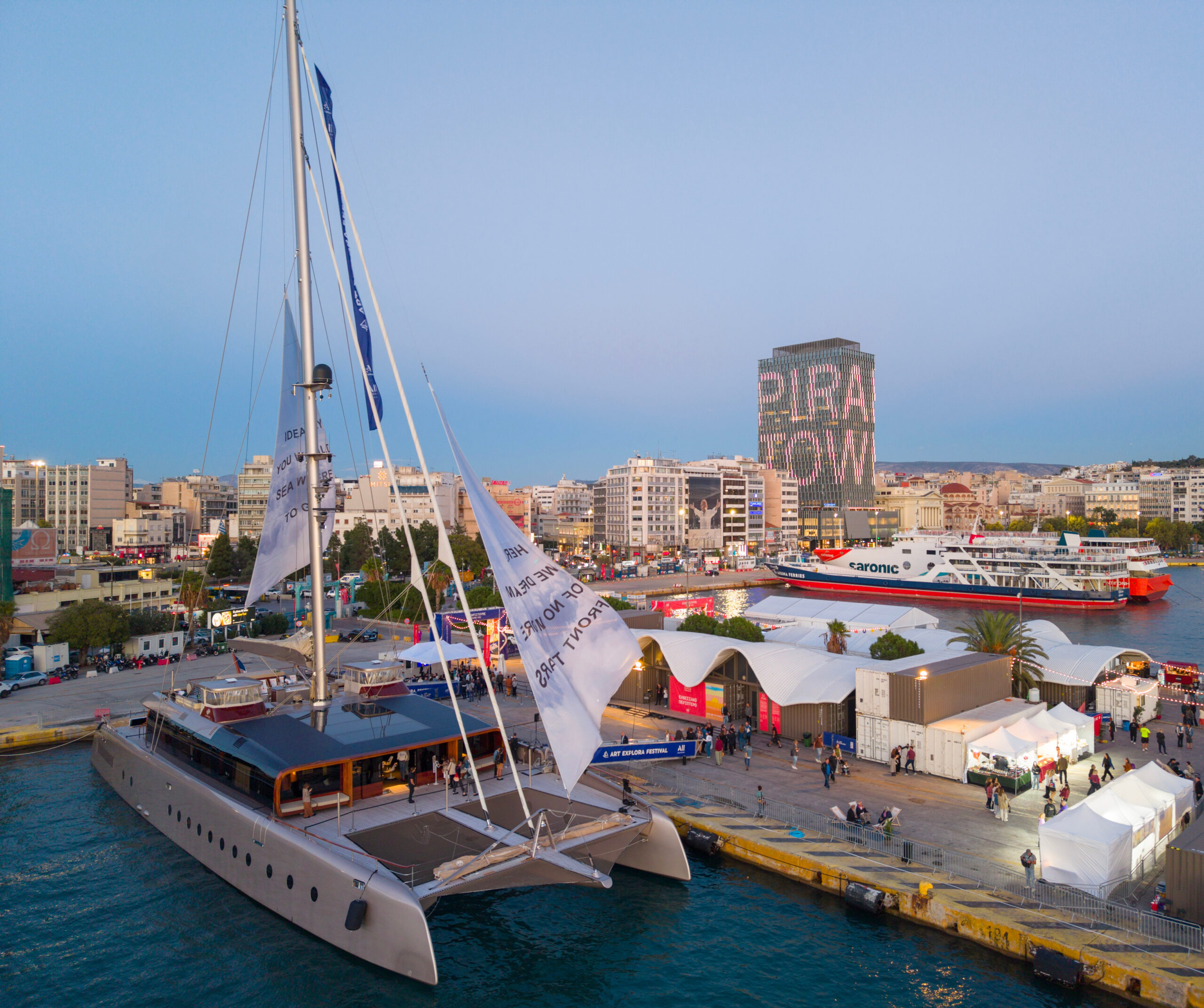 «Είναι χαρά και τιμή να βλέπουμε τα πανιά του Art Explora καταμαράν υψωμένα στον γαλανό ουρανό της πόλης του Πειραιά, ενός από τα πιο ζωντανά και δραστήρια λιμάνια της Ευρώπης. Πριν από δεκαοκτώ μήνες ξεκινήσαμε αυτή την οδύσσεια γύρω από τη Μεσόγειο, με αφετηρία τη Μάλτα, τη Βενετία, τη Μασσαλία, την Ταγγέρη, το Ραμπάτ, το Δυρράχιο, τις Κάννες, τη Νίκαια και τη Ριέκα και τέλος …Αθήνα, ερχόμαστε!