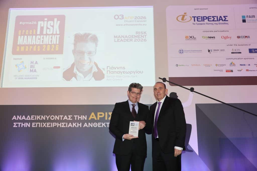 - ως Risk Management Leaders 2026 ο Κωνσταντίνος Μούγιος, Chief Risk Officer, και ο Γιάννης Παπαγεωργίου, Senior Risk Consultant της Aon Greece