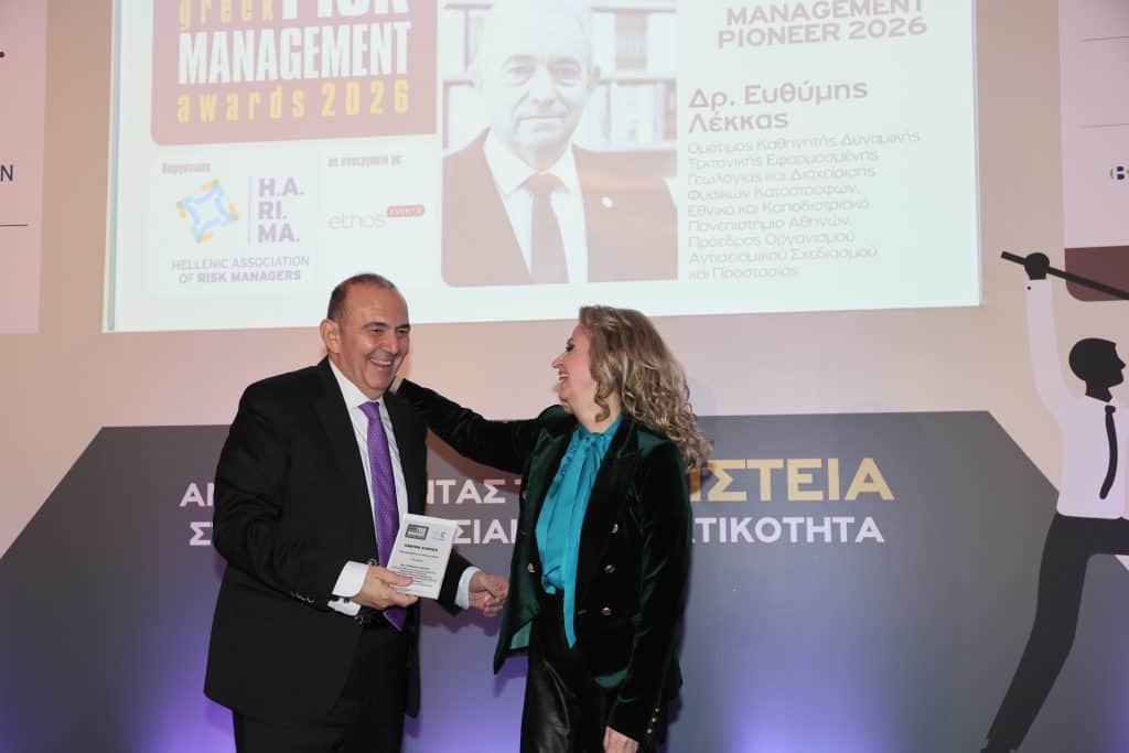 - ως Risk Management Pioneer 2026 ο Δρ. Ευθύμης Λέκκας, Ομότιμος Καθηγητής Δυναμικής Τεκτονικής, Εφαρμοσμένης Γεωλογίας και Διαχείρισης Φυσικών Καταστροφών, Εθνικού και Καποδιστριακού Πανεπιστημίου Αθηνών και Πρόεδρος του Οργανισμού Αντισεισμικού Σχεδιασμού και Προστασίας.