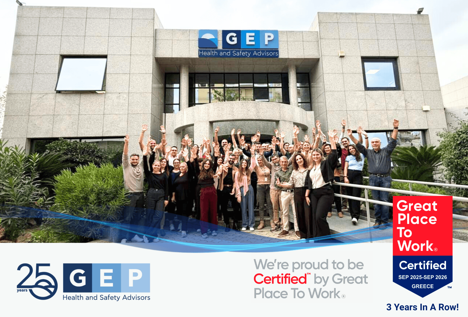 Η GEP, ηγέτιδα εταιρεία στον κλάδο της Υγείας και Ασφάλειας, ανακοινώνει με υπερηφάνεια ότι για τρίτη συνεχόμενη χρονιά απέκτησε την Πιστοποίηση του Great Place To Work™.