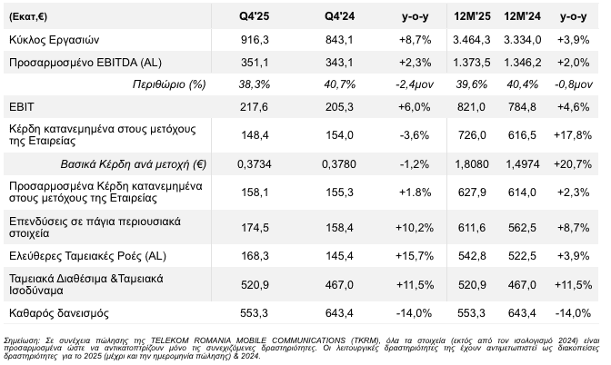 • Επιτάχυνση του ρυθμού ανάπτυξης: Αύξηση 8,7% στα έσοδα και 2,3% στο προσαρμοσμένο EBITDA (AL) στο τρίμηνο, στόχος προσαρμοσμένου EBITDA (AL) για το 2026 ~3%