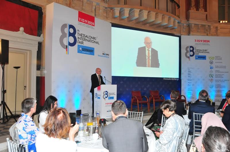 Κάλεσμα για συνεργασία, ώστε η ΔΕΘ να αναδειχθεί σε μια εξωστρεφή και διεθνή διοργάνωση με την υποστήριξη σημαντικών χωρών όπως η Γερμανία απηύθυνε ο υφυπουργός Εξωτερικών, κ. Κωνσταντίνος Φραγκογιάννης, προς τους παρευρισκόμενους στην εκδήλωση, ένα κοινό που απαρτιζόταν από εκπροσώπους ξένων πρεσβειών στην Ελλάδα, δημοσιογράφους και ελληνογερμανικές εταιρείες.