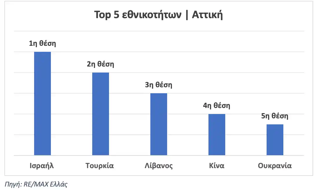 Με βάση τα αποτελέσματα της έρευνας, στην Αττική, οι Ισραηλινοί αποτελούν την πλειονότητα των ξένων αγοραστών και ακολουθούν οι Τούρκοι και οι Λιβανέζοι, ενώ σημαντική είναι και η παρουσία αγοραστών από Κίνα και Ουκρανία.
