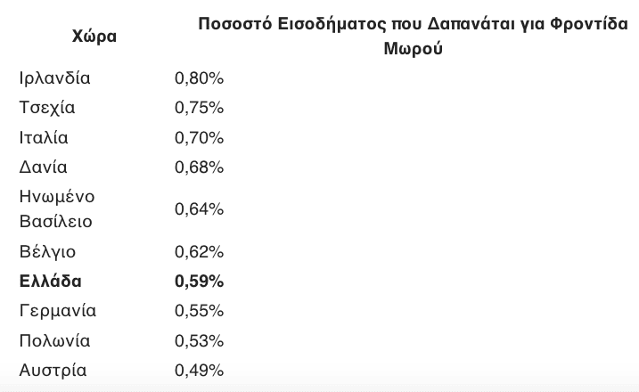 Η Ελλάδα κατατάσσεται στην 7η θέση παγκοσμίως, με το 0,59% του μέσου εισοδήματος των γονιών να δαπανάται για τις βασικές συσκευές φροντίδας μωρού. Αν και η Ελλάδα πληρώνει λιγότερο σε σχέση με χώρες όπως η Ιρλανδία και η Ιταλία, το κόστος παραμένει αρκετά υψηλό σε σχέση με άλλες χώρες της ΕΕ. Συγκριτικά, η Τουρκία, η οποία καταγράφει το χαμηλότερο κόστος, δαπανά μόλις το 0,17% του εισοδήματός της για την ενέργεια φροντίδας μωρού.
