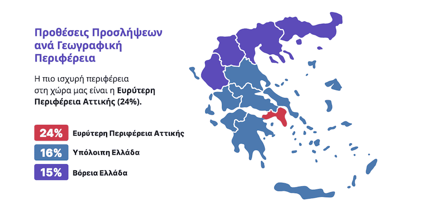 Υπόλοιπη Ελλάδα (16%): Παραμένει σε θετική τροχιά, με αυξημένες προοπτικές απασχόλησης σε σχέση με πέρυσι.