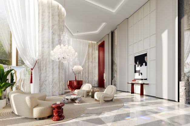 Το έργο περιλαμβάνει εσωτερικούς χώρους σχεδιασμένους από την Cavalli, την ιταλική εταιρεία μόδας που είναι γνωστή για το τολμηρό σχεδιαστικό της στυλ. Θα έχει ντεκόρ με θέμα τη θάλασσα και τα κοχύλια, μαργαριτάρια και μοτίβα ψαριών. Και οι 736 μονάδες στους τρεις πύργους προσφέρουν απεριόριστη θέα στη θάλασσα.