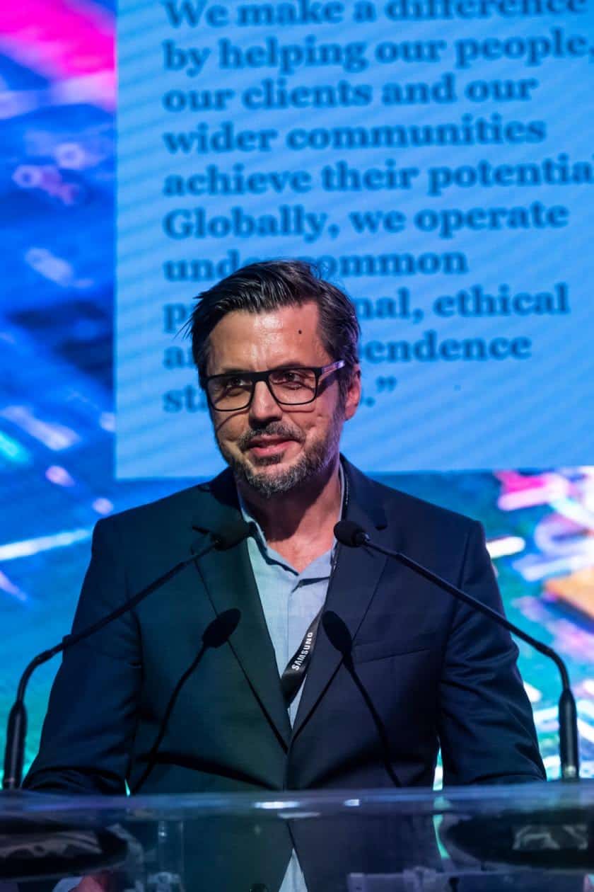 Στη συνέχεια, ο Θανάσης Παναγόπουλος, Director στο AI & Data του Technology Consulting της EY, ανέδειξε μέσα από συγκεκριμένα παραδείγματα και έργα, πώς η τεχνολογία μπορεί να λειτουργήσει ως μοχλός αποτελεσματικότητας, διαφάνειας και βιώσιμης ανάπτυξης για το κράτος και τους πολίτες. Στο ίδιο πλαίσιο ανέφερε πως: «Η συνεργασία δημόσιου και ιδιωτικού τομέα, με τη συμβολή εταιρειών όπως η Samsung και η EY, είναι καθοριστική για να δημιουργήσουμε πραγματική αξία, να ενισχύσουμε το δημόσιο συμφέρον και να χτίσουμε ένα καλύτερο μέλλον για όλους».