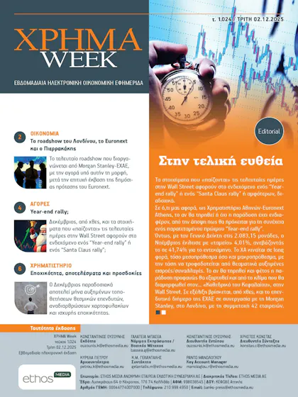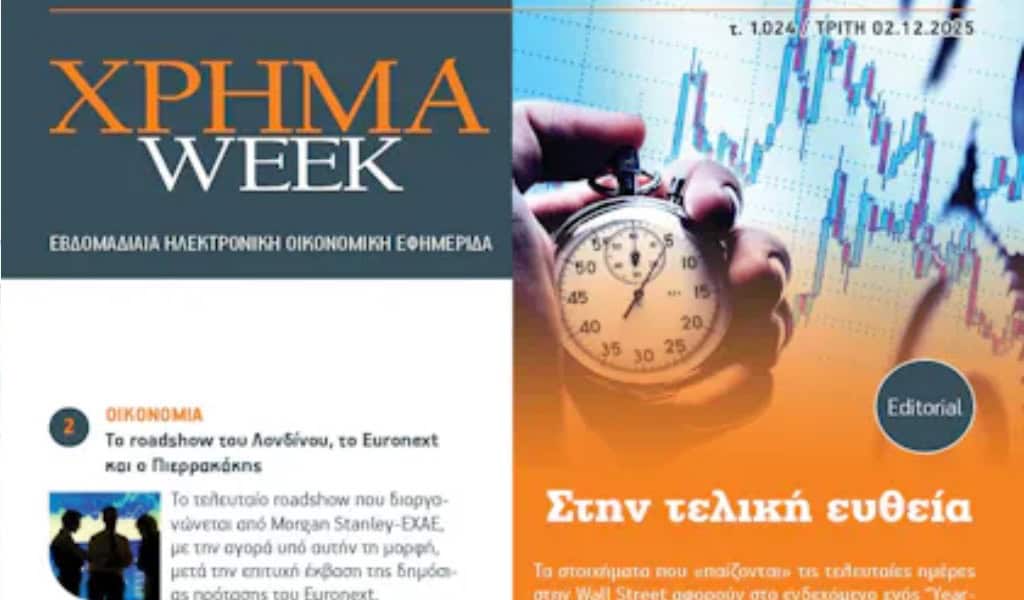Διαβάστε στο ΧΡΗΜΑ Week (τεύχος 1024), που κυκλοφορεί την Τρίτη 02 Δεκεμβρίου με τίτλο: Στην τελική ευθεία